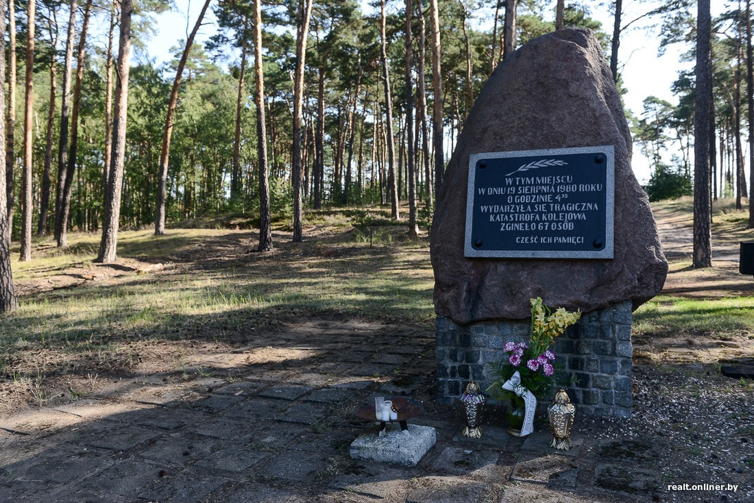 На автомобильной дороге №91, той самой, где когда-то в последние дни своего десятилетнего правления приземлился Эдвард Герек, сейчас стоит скромный указатель. В перелеске стоянка на пару машин и дорожка к небольшому мемориалу: валун, крест, стилизованный железнодорожный тупик и чемодан, на котором стоят керамические паровозики. Все усыпано цветами и уставлено лампадками: за несколько дней до нашего визита отмечалась очередная годовщина катастрофы.