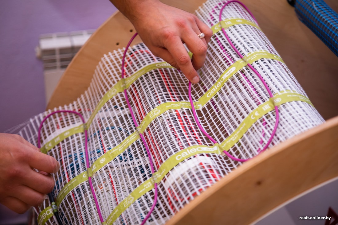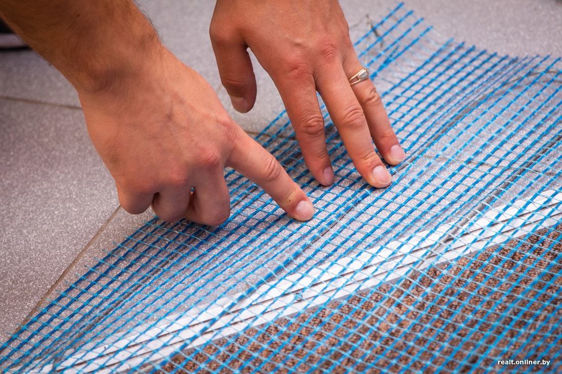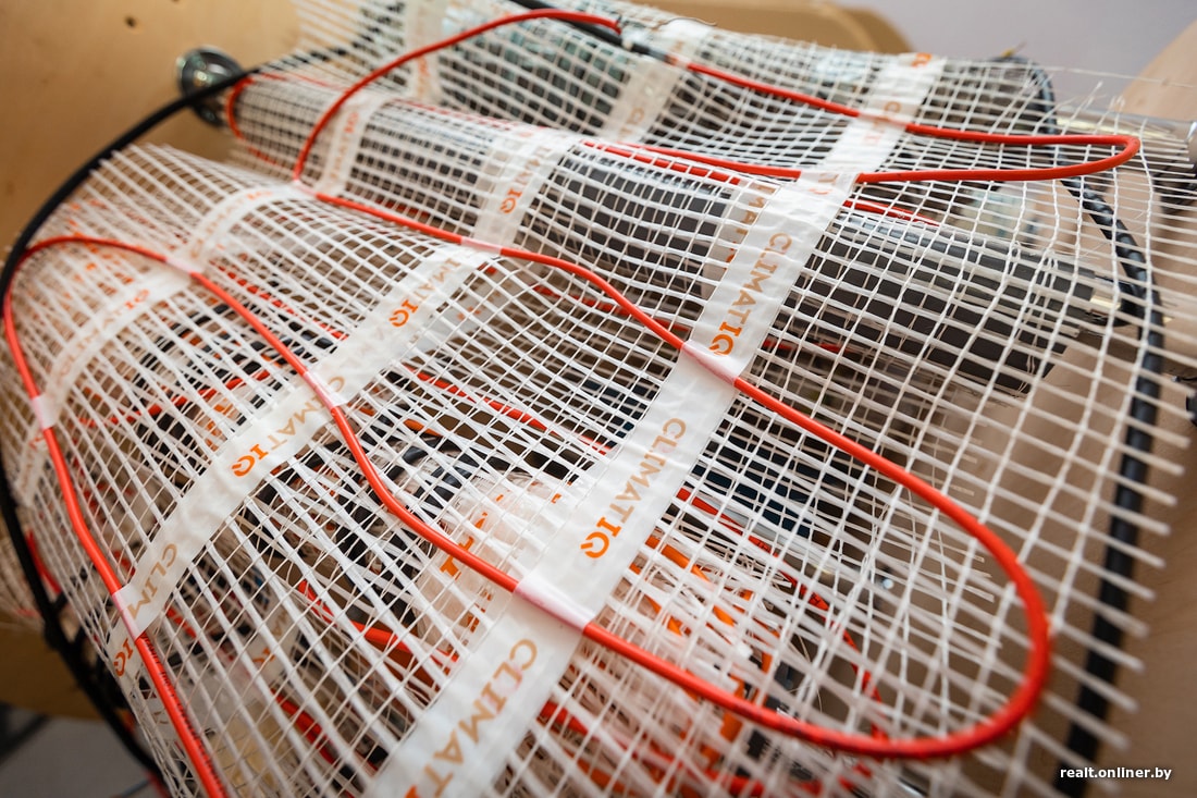 — Маты тоже бывают одножильные и двужильные, все ранее озвученные принципы сохраняются, — продолжает Дмитрий Казаровец. — Выбирая теплый пол такого типа, стоит обратить внимание на то, как закреплен кабель. В недорогих моделях провода будут приклеены к сетке обычным скотчем. Такой вариант может обернуться проблемами: мало того что кабель гуляет и при работе шпателем его могут случайно сместить (если не повредить), так еще, если скотч где-то прилегает неплотно, образуя пузырек, в этом месте может произойти перегрев и последующее перегорание. Найти потом эту точку будет довольно непросто, к тому же придется демонтировать плитку.