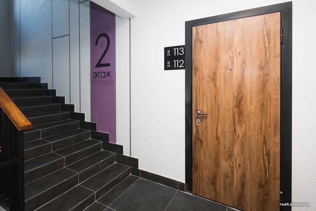 Вместе с профессиональными оценщиками Onliner изучил уже немало выставленных на продажу квартир. На этот раз нас пригласили в жилой комплекс «Александров парк», возведенный на въезде в Боровляны возле кафе «Очаг». Застройка представляет собой три вытянутых вдоль дороги трехэтажных дома из сборного железобетона. Треугольные эркеры сразу ассоциируются с МАПИДом, на самом же деле это модернизированная серия Солигорского домостроительного комбината.