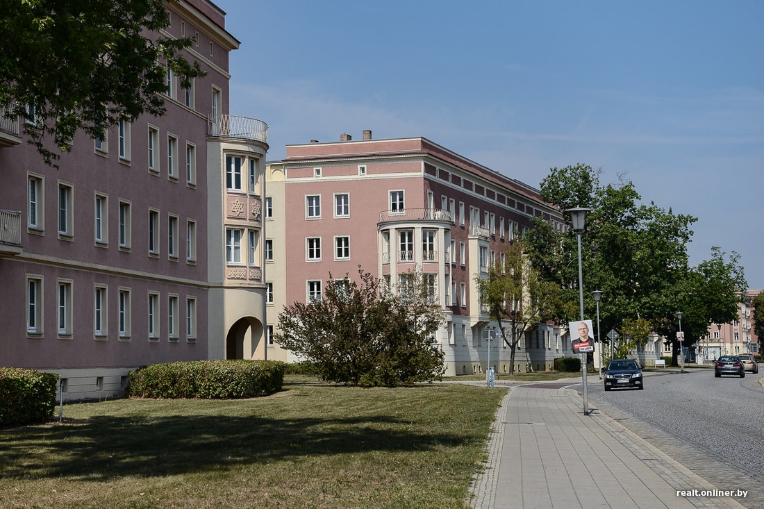 Сейчас вся центральная часть города поставлена под охрану как историко-культурное наследие, крупнейший по площади объект такого рода во всей — уже объединенной — Германии, ведь по своим масштабам аналогов этой роскошной и прекрасно отреставрированной сейчас застройки в ФРГ нет. Другой вопрос, что основная часть металлургической столицы страны выглядела совершенно иначе. После выхода в СССР в 1955 году постановления «Об устранении излишеств в проектировании и строительстве», отказа от ориентации на «освоение классического наследия» и переход на возведение функциональных зданий индустриальными методами соответствующие изменения произошли и в «странах народной демократии», в том числе и в ГДР. Скорее всего, здесь новые модернистские веяния встретили с облегчением: слишком дорого обходилось создание «дворцов для пролетариата».