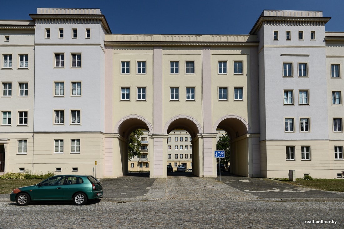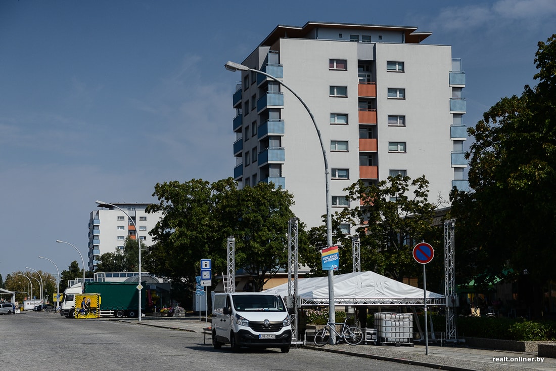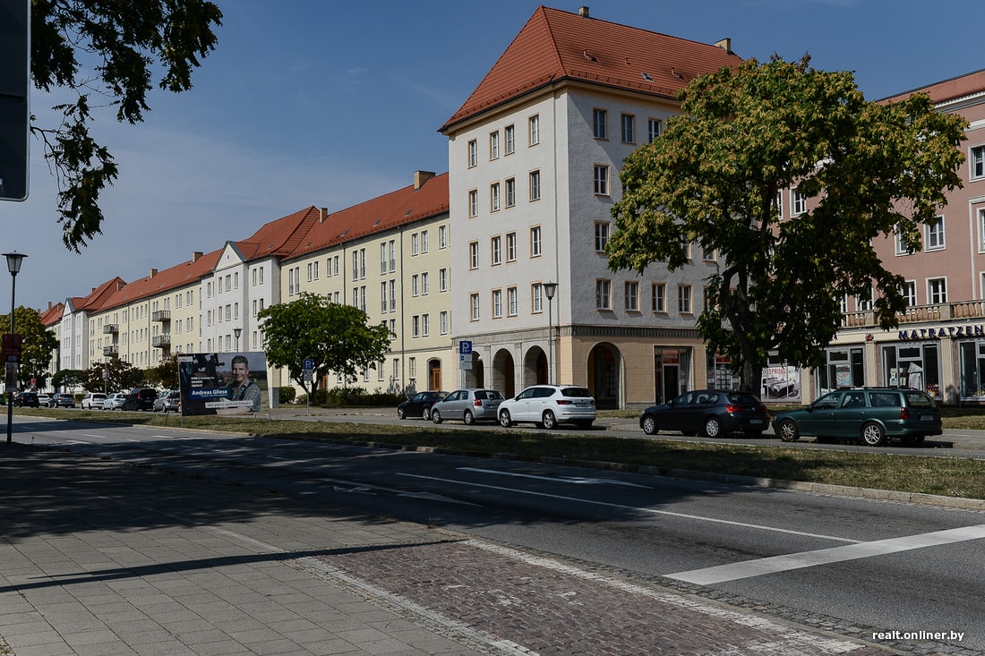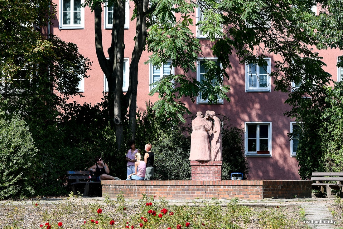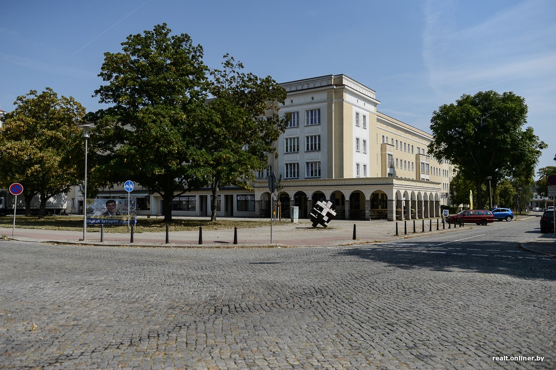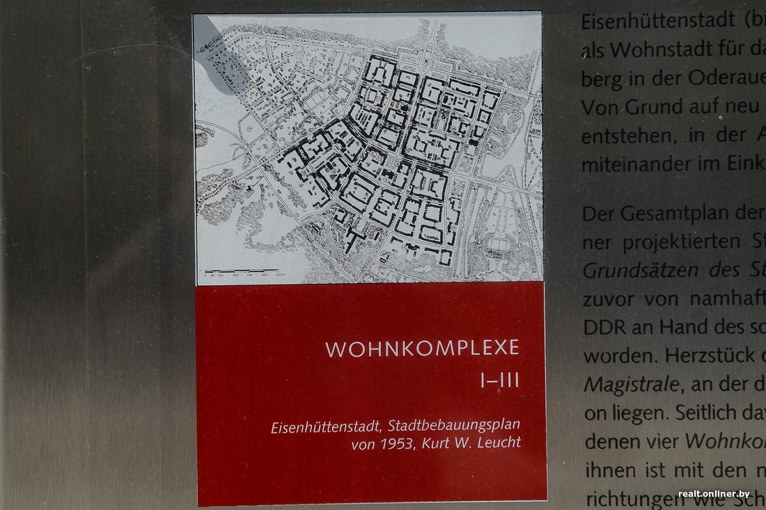 Мы приехали сюда в понедельник, чтобы увидеть, как изнемогающие от августовской жары рабочие убирают остатки какого-то очевидно масштабного праздника. Дело не в областных «Дожинках» местного разлива: как оказалось, в последние выходные лета в Айзенхюттенштадте проходит городской фестиваль, собирающий по четверть миллиона человек из окрестностей города и соседней Польши. Она совсем недалеко — сразу за Одером, по которому после Второй мировой войны прошла новая граница двух стран. На следующий день после бурного веселья «первый социалистический город в Германии» с трудом приходил в себя. По улицам утомленно слонялись редкие прохожие, но в таких декорациях эта урбанистическая утопия выглядела еще атмосфернее. Пейзаж, в общем-то, очень (иногда до боли) знакомый. Целые ансамбли неоклассической квартальной жилой застройки, чередующиеся с парадными общественными зданиями — на просторах бывшего СССР подобных городов, с нуля созданных при крупном предприятии в стиле «строили пленные немцы», десятки. Отличие (главное!) в другом: Айзенхюттенштадт, первые восемь лет своей жизни проживший как Сталинштадт (город Сталина), только что побежденные всем миром немцы строили для себя, на своей земле.