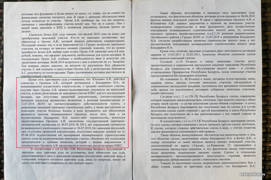 — В какой-то момент следователь мне говорит: «Наталья Бондаренко, участок которой вы купили, утверждает, что вообще не присутствовала на сделке и деньги не получала». Я в шоке: как не присутствовала, была она. В ответ: «Что вы виляете, тут уголовное дело, все дали показания, а вы пытаетесь запутать». Потом начал меня атаковать: как она выглядела, какая стрижка, цвет волос. А я банально не помню: серьезно, семь лет прошло! Да и не волновало меня, как она выглядит: я документы проверял, а не цвет ее глаз. Устроили очную ставку, привели каких-то девушек, естественно, я никого не узнал.