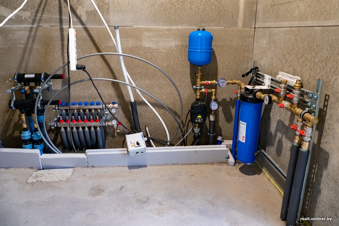 Выбор пал на шведский насос мощностью 8 кВт со встроенным бойлером на 180 литров. В сравнении с немецкими аналогами он стоил очень даже гуманных денег — $7300. На участок заехала бригада буровиков с геотермальными зондами, антифризом и всем сопутствующим оборудованием. За несколько дней были пробурены скважины глубиной 80 метров каждая, в них погружены зонды. Затем была отрыта траншея от дальней скважины к будущей котельной.