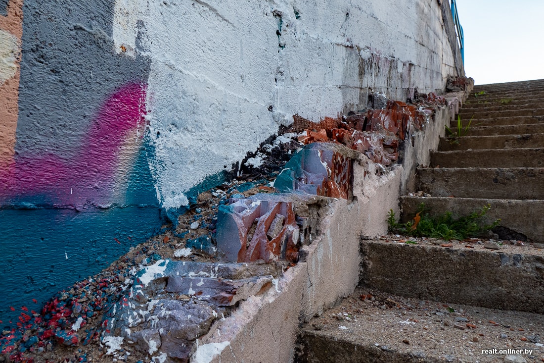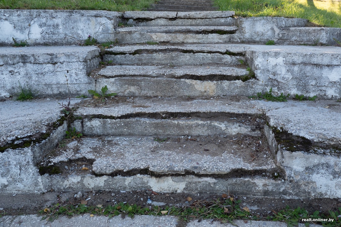 Эх, сколько же теплых воспоминаний связано с этими фигурами у выросших здесь детей. Многие моменты сотрутся из памяти, а причудливая рыбка и морской конек — никогда. Они и сейчас на своих местах, только выглядят уже как-то устрашающе. Мозаика местами осыпалась, пооткалывались куски губ, плавников и хвостов.