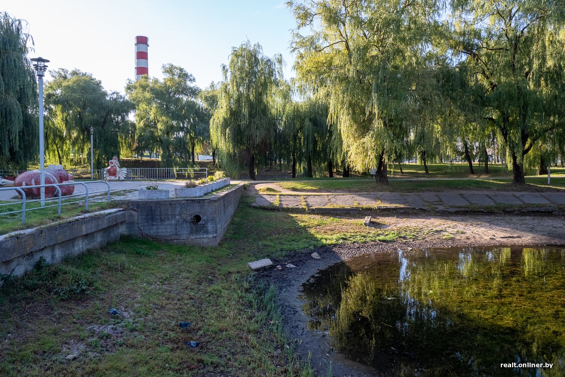 Как власти района и города могли так запустить зону отдыха, где еще не так давно купались дети? Как объясняли чиновники, ответственной за территорию сквера является компания «Минск Принцесс Отель», которая выкупила заброшенное здание кинотеатра «Современник» и пытается превратить его в современный культурно-развлекательный комплекс. После завершения стройки предполагалось благоустроить сквер и привести его в достойный вид. Однако расчет на инвестиции не оправдался, вскоре объект превратился в один из позорных долгостроев города.