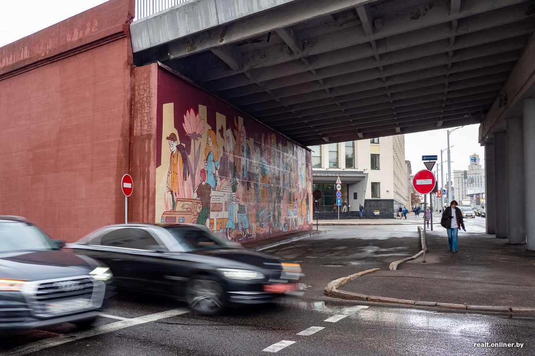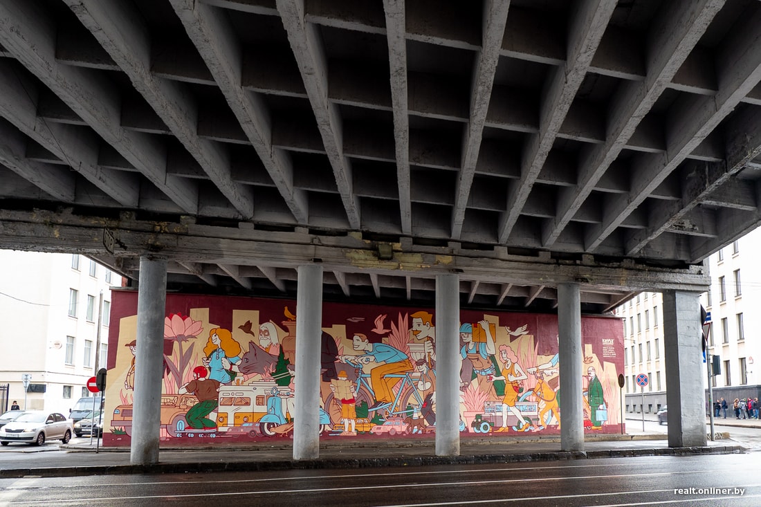 В воскресенье был завершен последний мурал арт-фестиваля Vulica Brasil, который проходил в Минске этим летом. Граффити называются «Імгненнасць» и принадлежат руке Влада Хвастова. Организаторы фестиваля говорят, что «Імгненнасць» призвана напомнить нам о постоянной динамике, в которой незаметно проходит наша жизнь, и эта динамика — единственная постоянная для каждого из нас. Фестиваль завершился еще в августе, но «Імгненнасць» начали наносить на стену под мостом возле площади Независимости в ночь на 14 сентября, причем сразу в восемь рук. Работу завершили за полмесяца.