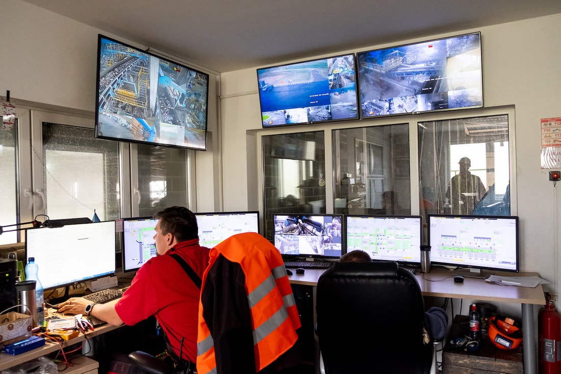 700 тонн в день — к таким цифрам здесь привыкли. Наиболее «мусорные» дни — вторник и четверг. Ручного труда на заводе минимум. К нему можно отнести будни тракториста, который раз за разом зачерпывает огромной «кистью» перемешанный мусор и отправляет его в шредер, где разноцветный «калейдоскоп» крошится на куски не больше 30 сантиметров. Кабина трактора, говорят, оборудована фильтрами, поэтому работать можно без респиратора. Трудовая смена — 16 часов (затем два выходных), зарплата — около €1000 на руки.