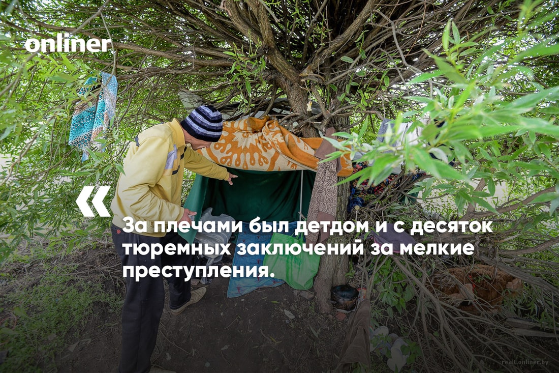 — Давайте мы не будем навязывать друг другу, но я скажу так: не совсем уж я такой и бездомный. Был бы я бездомным, я бы такой аккуратный не сидел. Бездомный от бездомного отличается. Работу мне дай — я буду работать. У меня в трудовой много записей — и по году, и по два я работал. У меня жилья просто нет.