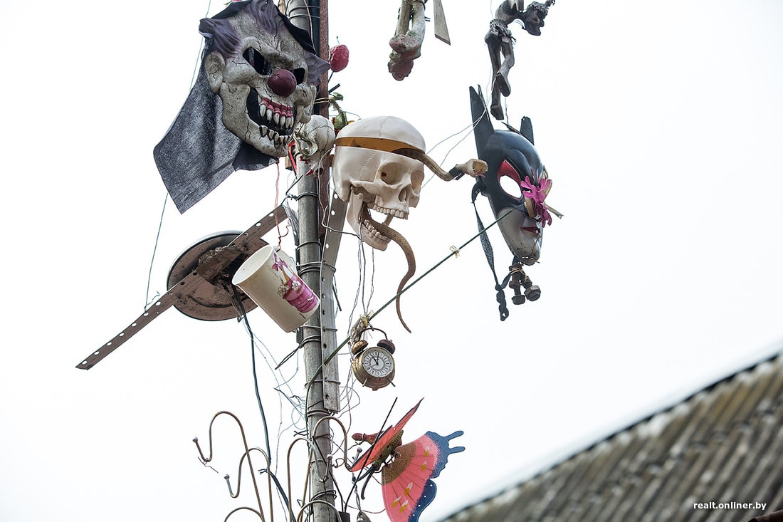 — Ай, — отмахнулся мужчина. — Какой тут смысл? Манекен нашел на мусорке, ноги и черепа животных — в лесу. Я часто хожу в лес за грибами. Люди относятся по-разному, но директор школы, которая через дорогу, поддерживает. Только попросил убрать бутылку от шампанского и надпись «на опохмелку» на банке для мелочи. Ну я заменил бутылку на молочную, а слово «опохмелку» на «чипсы». А что поделаешь, если школа напротив? Люди иногда копыт пугаются, а так — ничего не имеют против.