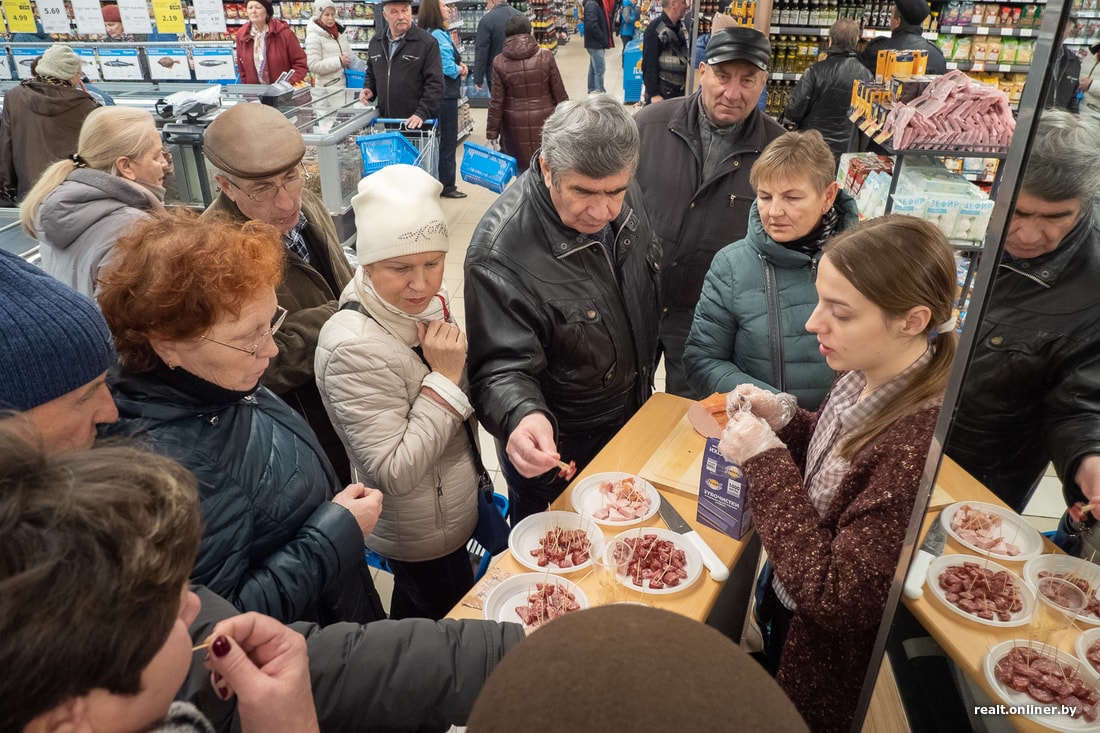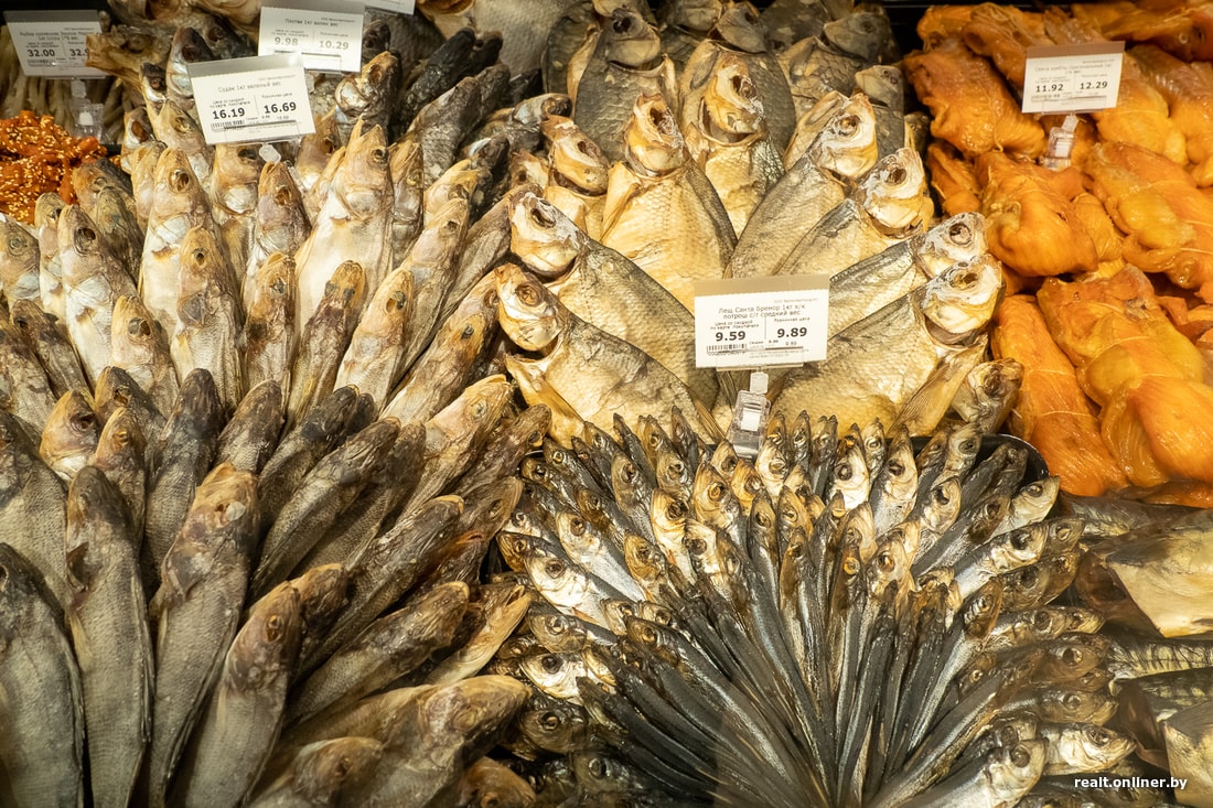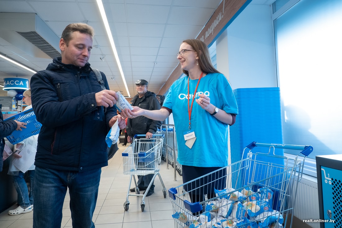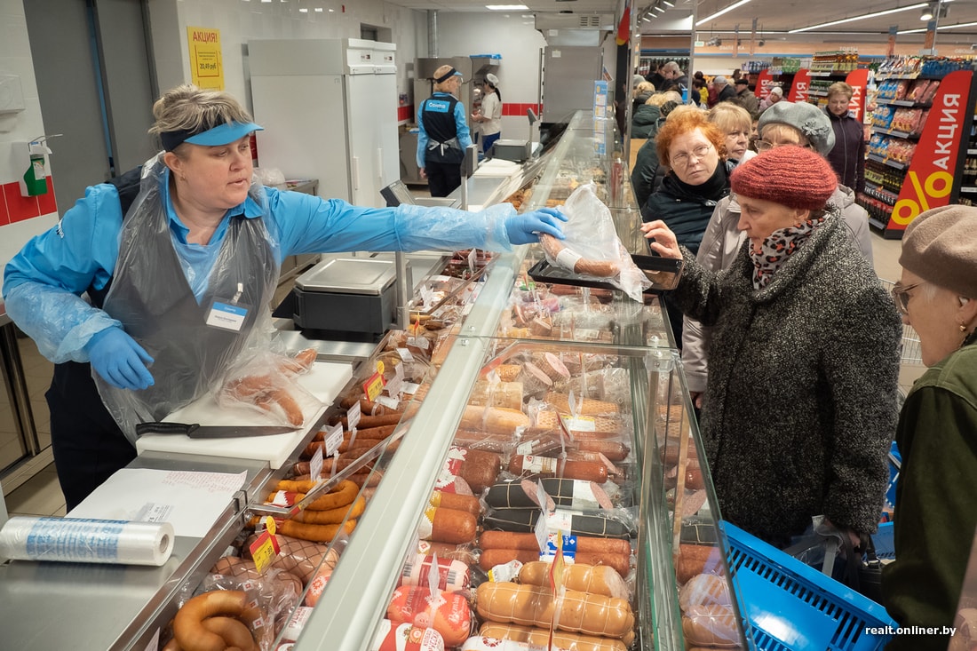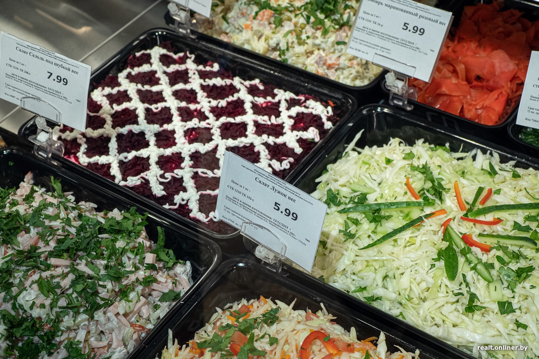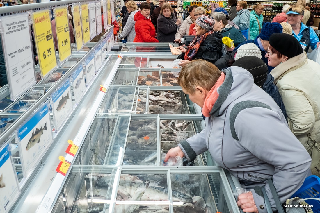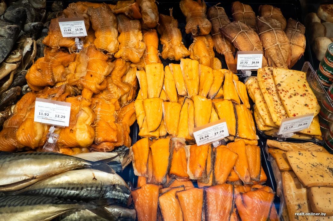 В новом магазине большой выбор товаров — все привычные отделы (плюс пекарня, своя кулинария и приготовление пиццы) и более 12 000 наименований товаров (кто ходил в умирающие «Рублевские», тот поймет, насколько это радостная весть). Что касается сегодняшнего дня, то больше всего людей стояло за недорогой рыбой из вод Атлантики. Так, сельдь разбирали за 2,89 рубля за кило, минтай — за 4,99.