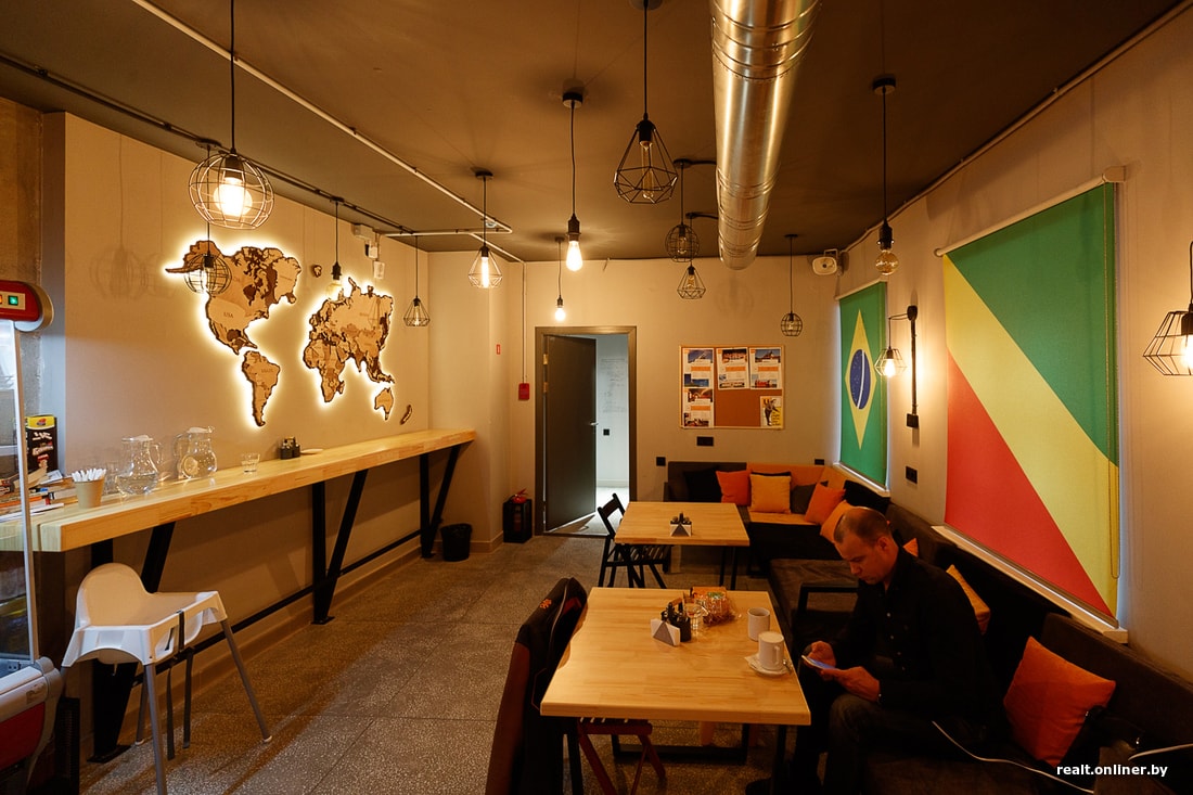 — Нам очень повезло с архитектором Валентиной Смеян, благодаря которой удалось сохранить в интерьере оригинальный кирпич, восстановить исторический облик окон и множество других деталей. За обустройство интерьера отвечал талантливый художник Антон Шаппо, он мастерски объединил современность с историческим духом здания, — вспоминает управляющая хостелом Urban и его соинвестор Ксения Курусь. —Многие решения приходилось вместе отстаивать на планерках в «Мiнскай спадчыне». Рабочим казалось проще все заштукатурить, но мы настаивали на том, чтобы вписать в интерьер старую кладку, колонны и дымоходы.