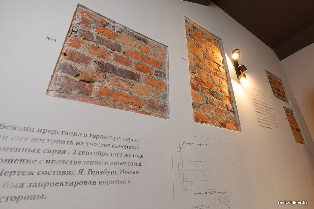 Стены на лестницах и в коридорах дополнены надписями с историческими фактами о доме, фрагментами найденных в архивах чертежей и планировок XIX века, а также фотографиями этапов реконструкции здания.