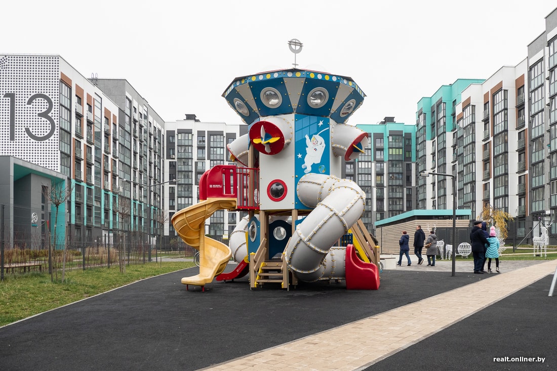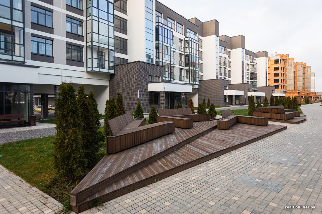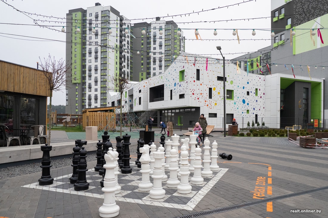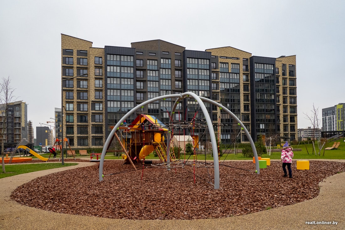 Для принципиальных читателей стоит сделать пометку: пока девелопер строит исключительно вне столицы. Его вотчина — Минский район, но при этом та же «Новая Боровая» подкралась к городу так близко, что границу еще надо рассмотреть. Да и нельзя не признать влияние районного застройщика на общие тенденции строительства: кто знает, были бы у нынешних частных и государственных новостроек оригинальные фасады и аккуратные входные группы, если бы не «замкадье». (Только до приличных дворов — да еще и без машин — конкуренты пока не дошли.)