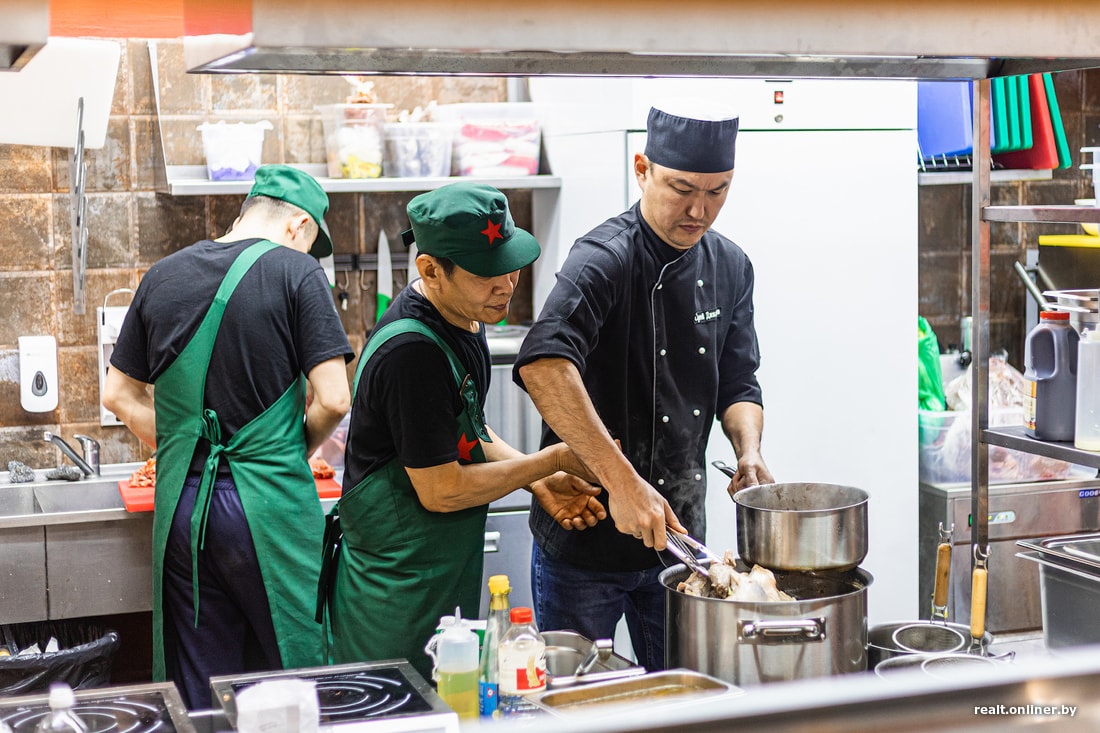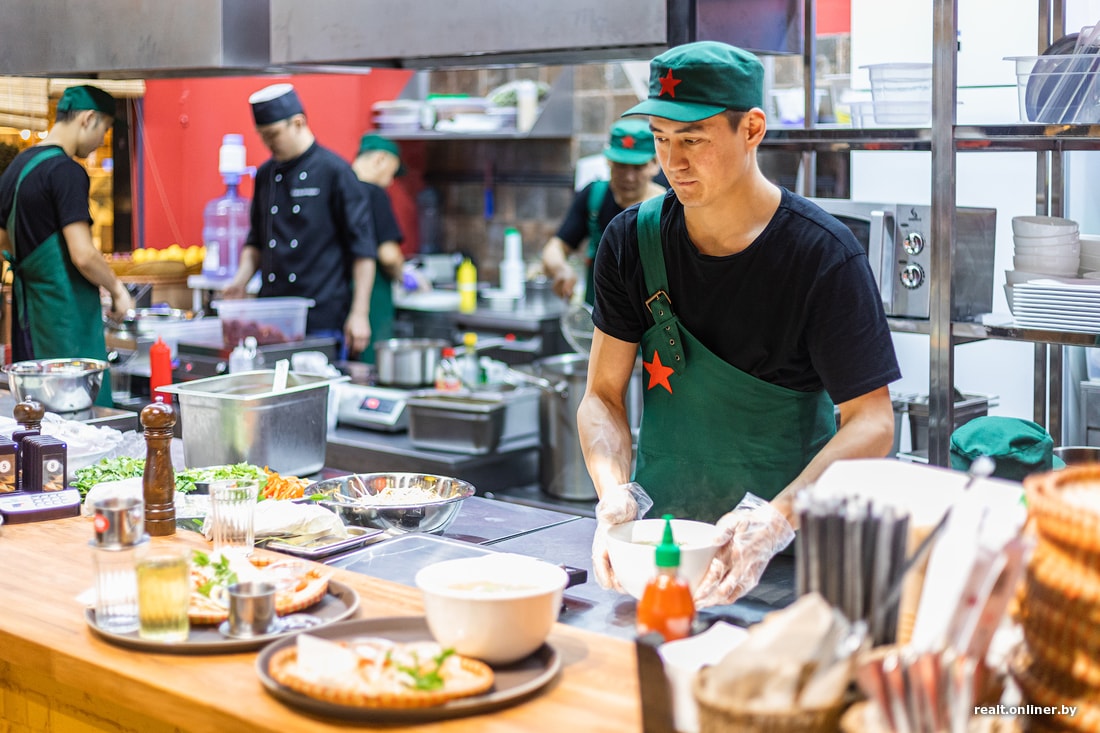 На кухне работает азиатская команда поваров, прибывшая специально на открытие. Денис говорит, блюда в их ресторане на вкус точно такие же, как во Вьетнаме.