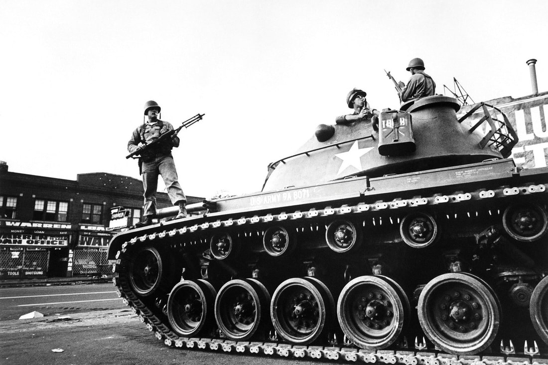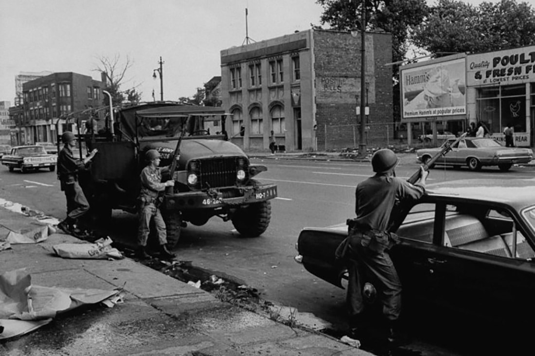 Параллельно продолжалась неразбериха и в местном руководстве. Мэр Детройта Кавана (демократ), губернатор штата Ромни (республиканец) и президентская администрация Линдона Джонсона (также демократическая) никак не могла разобраться в сферах своей ответственности. В конце концов лишь к полуночи понедельника, 24 июля, президент Джонсон санкционировал привлечение федеральных сил: подразделений Национальной гвардии США и сразу двух воздушно-десантных дивизий. На следующий день после обеда в Детройт вошли танки, примерно 8000 солдат Нацгвардии и более 4,5 тыс. десантников.