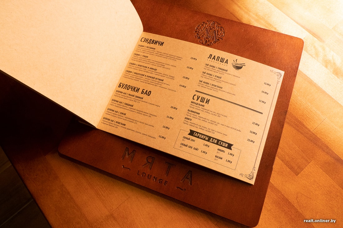Эта «Мята» стала одиннадцатой в городе. Как говорят в заведении, отличаться она будет в первую очередь кухней. Из меню убрали классические бургеры, пасту и повернули в сторону Азии: здесь появилась лапша, булочки бао, супы. Количество позиций в меню сократилось, «чтобы не заставлять человека лишний раз нервничать и выбирать из десятков сортов чая».
