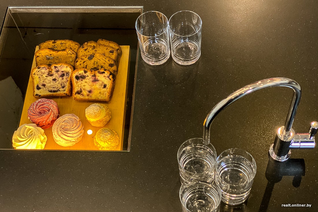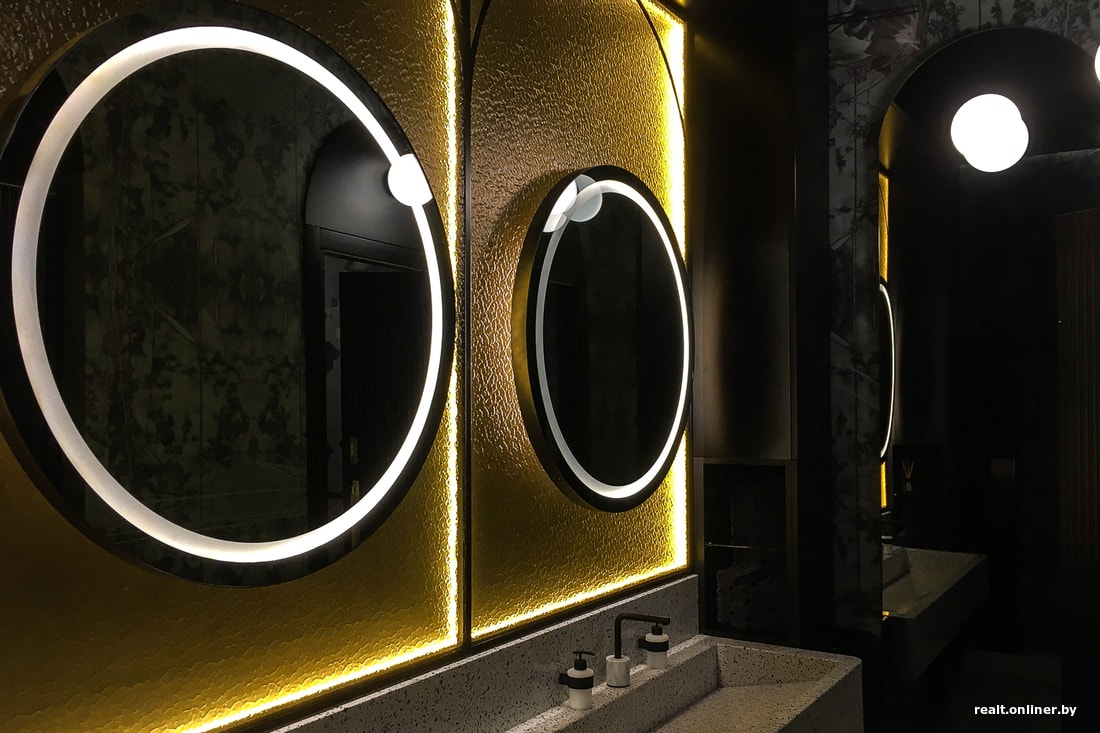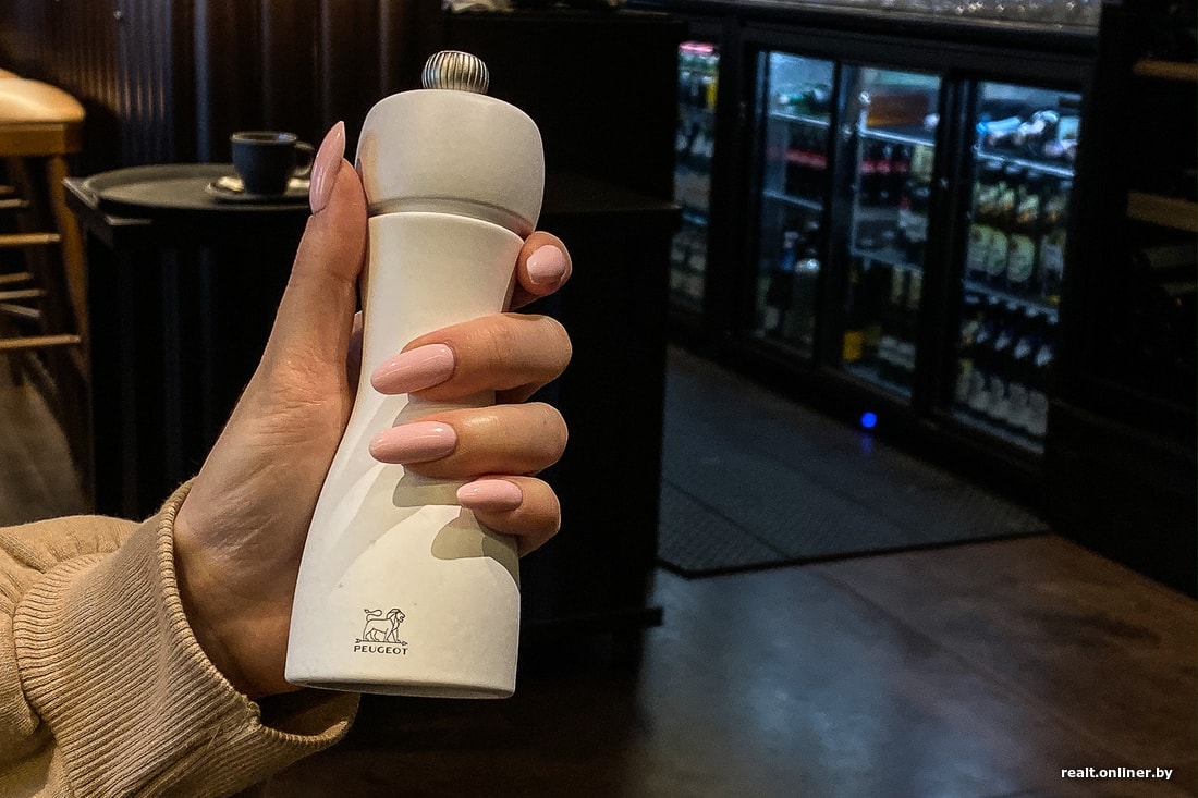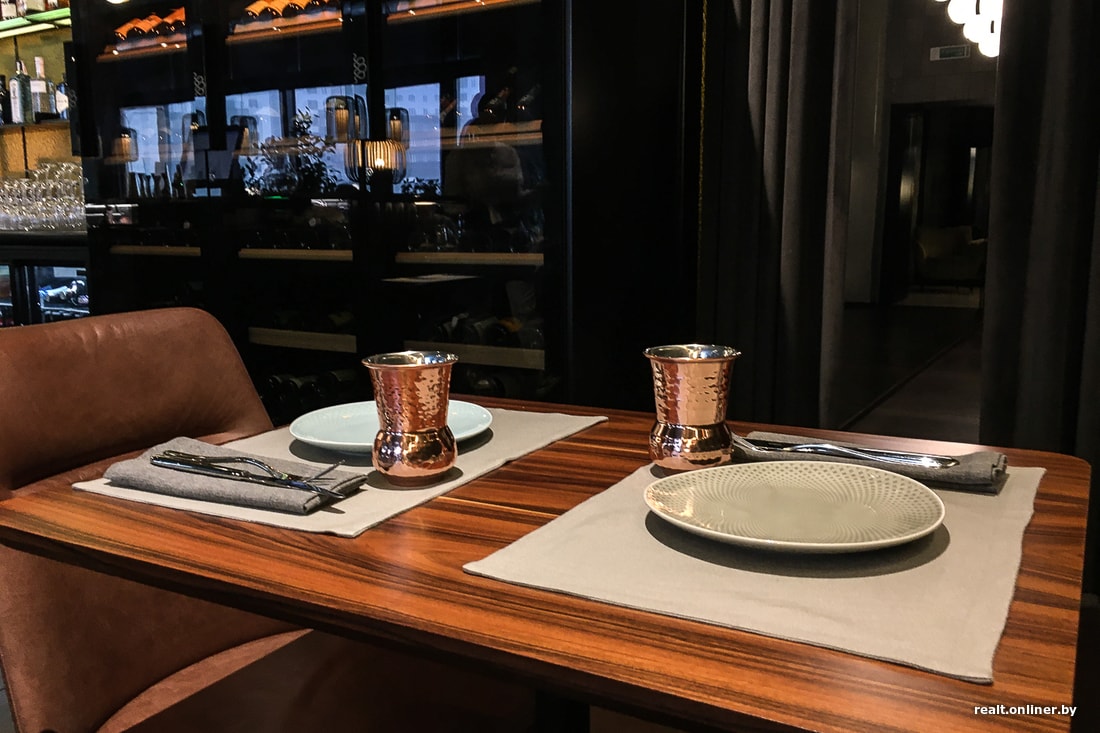Сразу видно: интерьер дорогой. С этим в Минске вообще нет проблем. В санузле дорогая сантехника, на столах стильные перечницы Peugeot, отделка и дизайн выглядят качественно. Ты будто обязан этому интерьеру тоже смотреться неплохо.