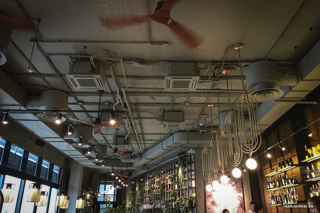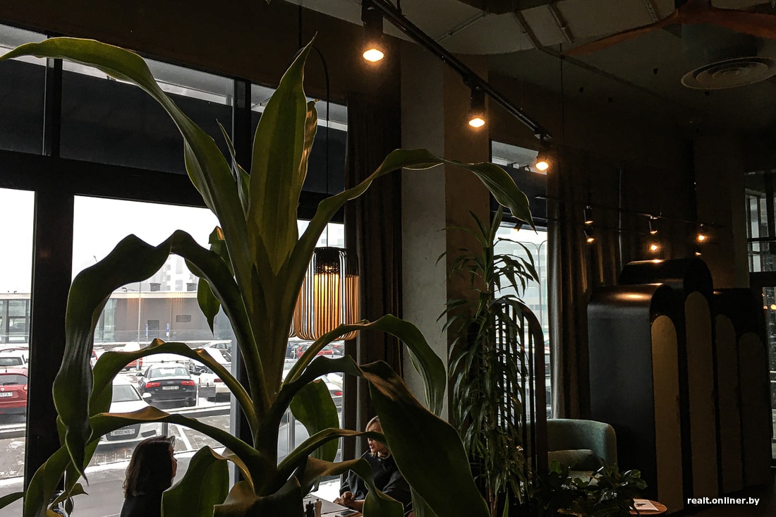 — Bloom — это цветение, — доходчиво объяснил официант. — Если обратите внимание, за окнами сплошной бетон, асфальтированная парковка, не хватает зелени. Поэтому мы решили открыть ресторан именно в стиле mid-century modern, отличительная особенность которого состоит в сочетании бетона, дерева и зелени. Создали такой уголок цветения, небольшой сад.