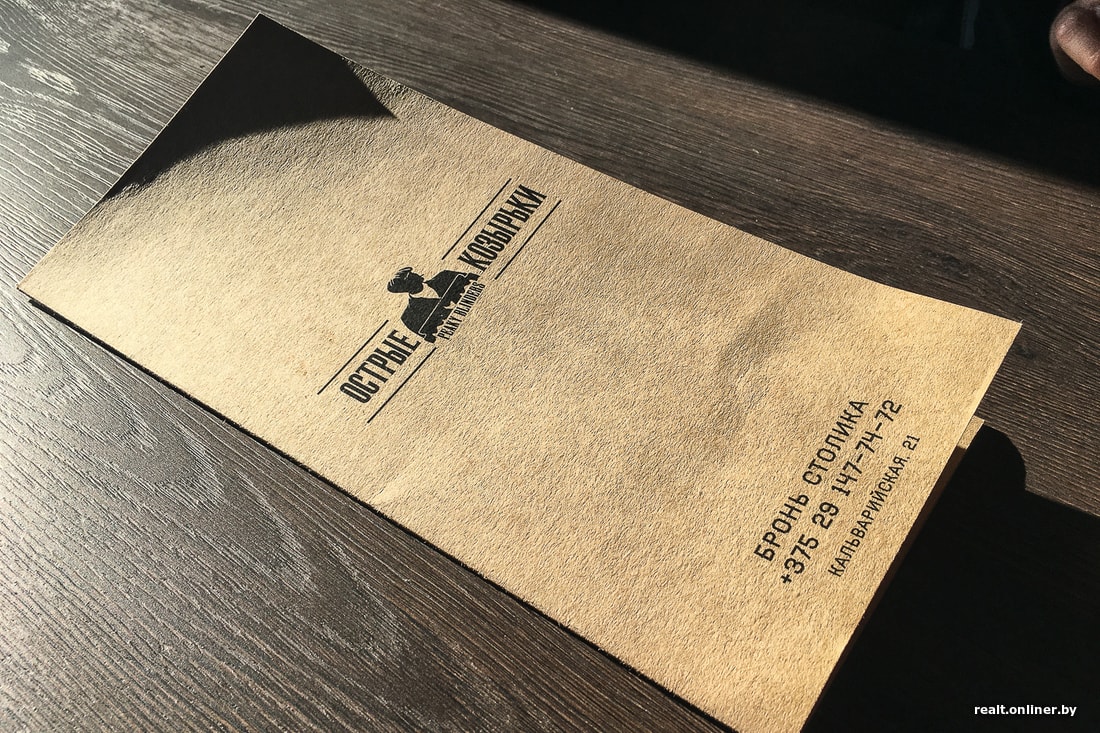 Бар «Острые козырьки» — дело рук нескольких друзей, которые много лет прожили в Великобритании, а по приезде на родину решили открыть английский бар. Интерьер чопорный: коричневые цвета, высокие стулья и диваны, кирпич и лофт. Можно сесть в зоне посветлее — у окна, выходящего прямо на будущую территорию фуд-корта.