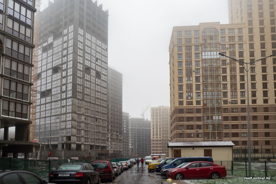 Меньше всего скандалов и недовольств пока связано с «Минск-Миром». Его Dana Holdings сразу презентовала высокоплотным (хоть и не без присущей застройщику патетики в стиле «будущее страны и мира» не обошлось) и малопарковочным. Дома действительно лепят активно и запускают новые стройки буквально одну за одной.