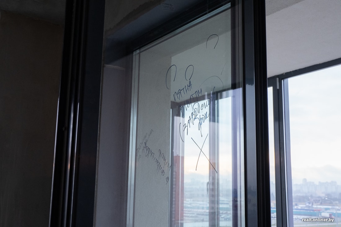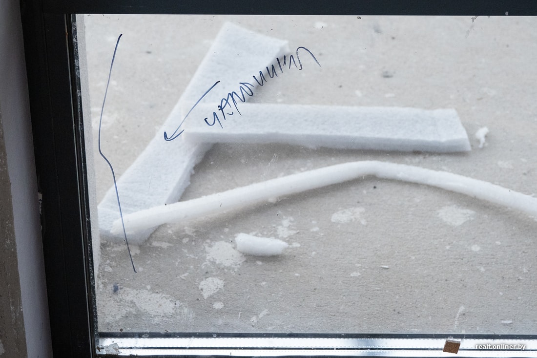 Уже по тому, что в комнате образовался «склад» стеклопакетов, понятно, что этим вопросом застройщик занимался — так сказать, живое доказательство. Правда, не дозанимался: на некоторых окнах фиксируем старые «раны» и… новые. Возможно, царапина на большом окне была пропущена в прошлый раз, а может быть, она образовалась, когда рабочие усердно «лечили» покалеченную жизнью раму.