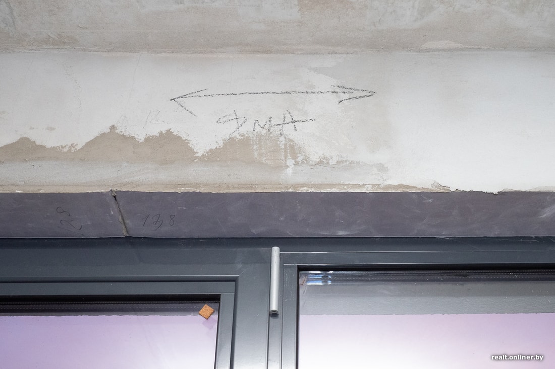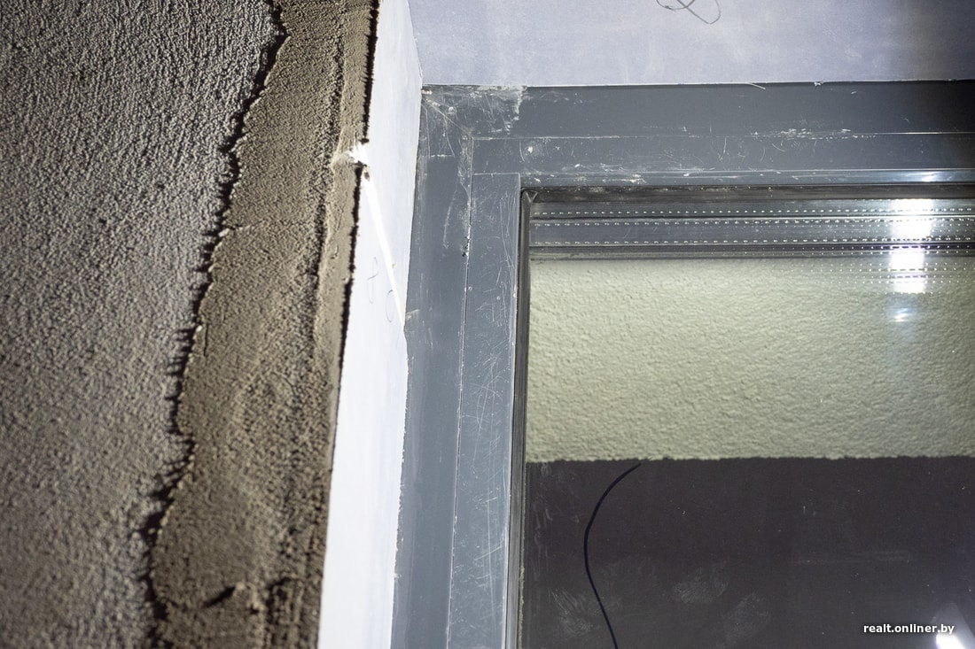 Олесю с супругом возмущает вариант отделки откосов: поверхность слепили из того, что было, а именно из нескольких кусков гипсокартона. Смотрится и вправду не очень, но у застройщика на это есть бронебойный ответ: «Так по проекту». Специалист же советует супругам во время ремонта снять этот «гипс» от греха подальше и заштукатурить откосы.