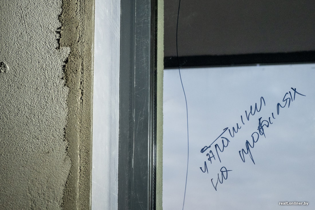 В новом доме чуть более ста квартир, высота потолков — 2,80, межкомнатных перегородок нет — только периметр и стены санузла. В общем, возможностей «накосячить» вроде как меньше. Что же будет с нашей «подопытной» квартирой? В августе в «двушке» уже проводилась предварительная приемка, тогда специалист компании «Эво Лэнд» составил список недоделок. В него вошли поцарапанные стеклопакеты на лоджии и в комнатах, «травмированные» рамы, пятна ржавчины на радиаторах, следы намокания и локальные отслоения штукатурки на стенах, неровности на стяжке, неоднородная фактура декоративной штукатурки на лоджии, отслоение наличника на входной двери. В общем-то, ничего критичного — устранить можно за один день. Было ли это выполнено?