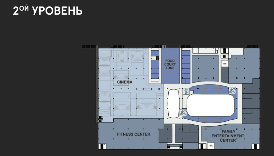 Что сегодня известно о Mega Park? В офисе застройщика нам назвали основные характеристики комплекса и его особенности. Общая площадь составит 57,7 тыс. кв. м. На первом этаже разместятся гипермаркет Green, галерея бутиков (более 100 магазинов) и ледовая арена, на втором — мультиплекс Silver Screen, большой фитнес-центр, семейный развлекательный центр и фуд-корт.