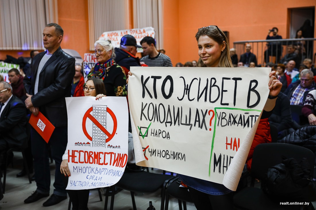 Как только выступающие закончились, у микрофона выстроилась длинная очередь. Оштукатуренную стенку подперли скромные горожане с плакатами-обоями. Вслед за ними зашелестел и зал. Кто-то даже встал.