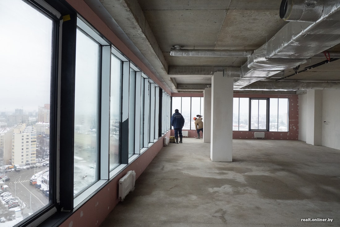 Если когда-то в Минске усиленно возводили гостиницы и торговые моллы, то сейчас крупные девелоперы переключили внимание на бизнес-центры. Что вполне разумно: в IT-стране все-таки живем. Совсем скоро должно завершиться строительство новой высотки — 16-этажного бизнес-центра «Аякс», расположенного недалеко от института культуры. «Стеклянное» здание уже готово на 98% процентов и зарезервировано практически наполовину. Как оно выглядит изнутри — в нашем репортаже.