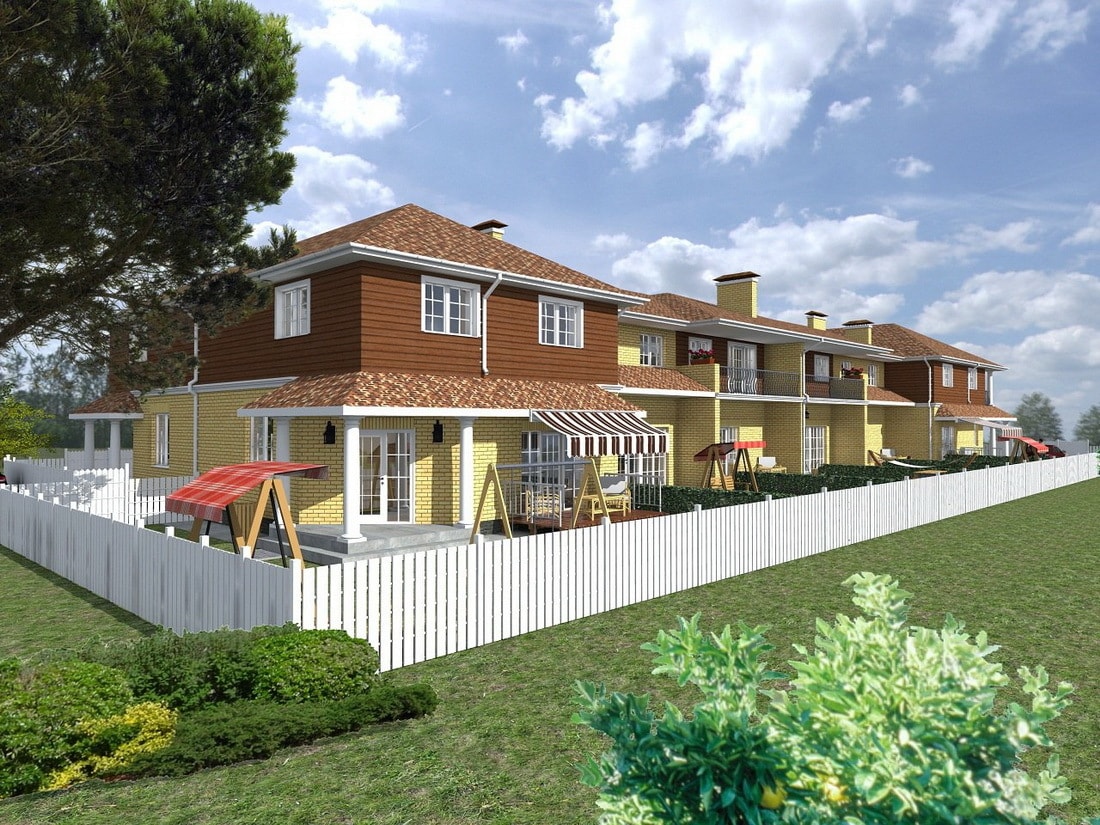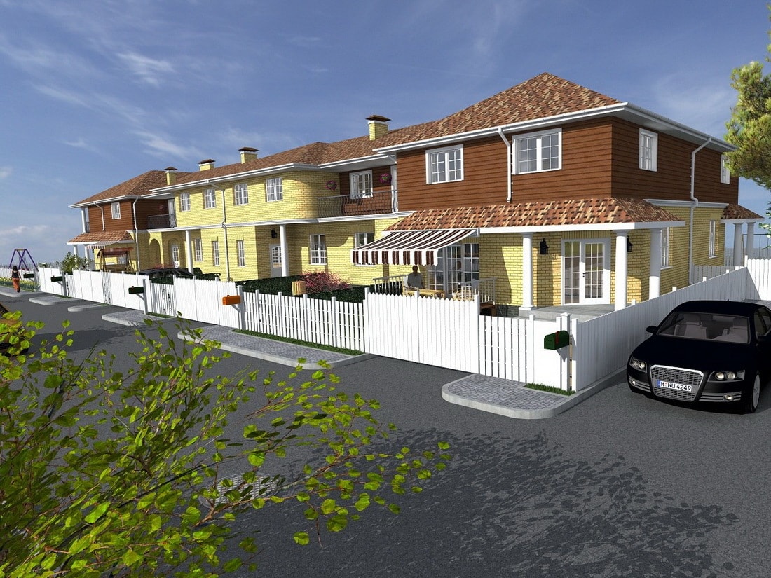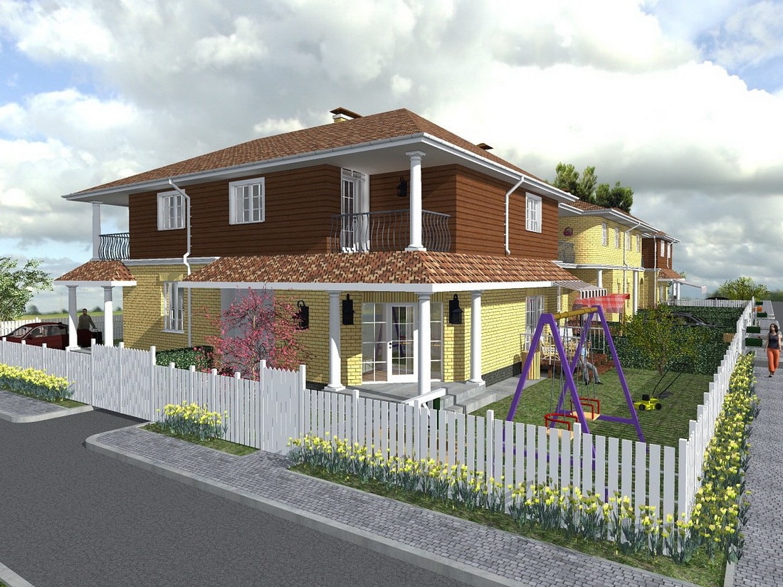 Кстати, готовый (ну почти) вариант таунхауса почти не отличается от красивых картинок, которые когда-то показывал Артем Бондарев.
