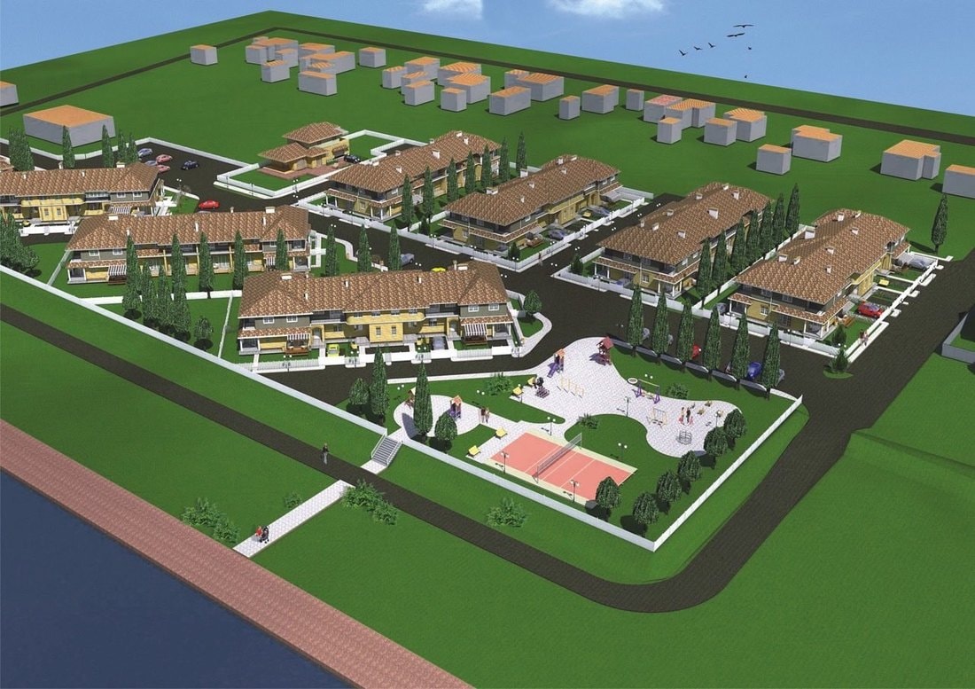 Более того, существовала идея когда-нибудь развить успех и построить здесь целый «солнечный город» с довольными жителями. Замысел был красивый и, скорее всего, честный. В жестокой реальности дело ограничилось только двумя домиками, от остального городка остались картинки. Потом поймете почему.