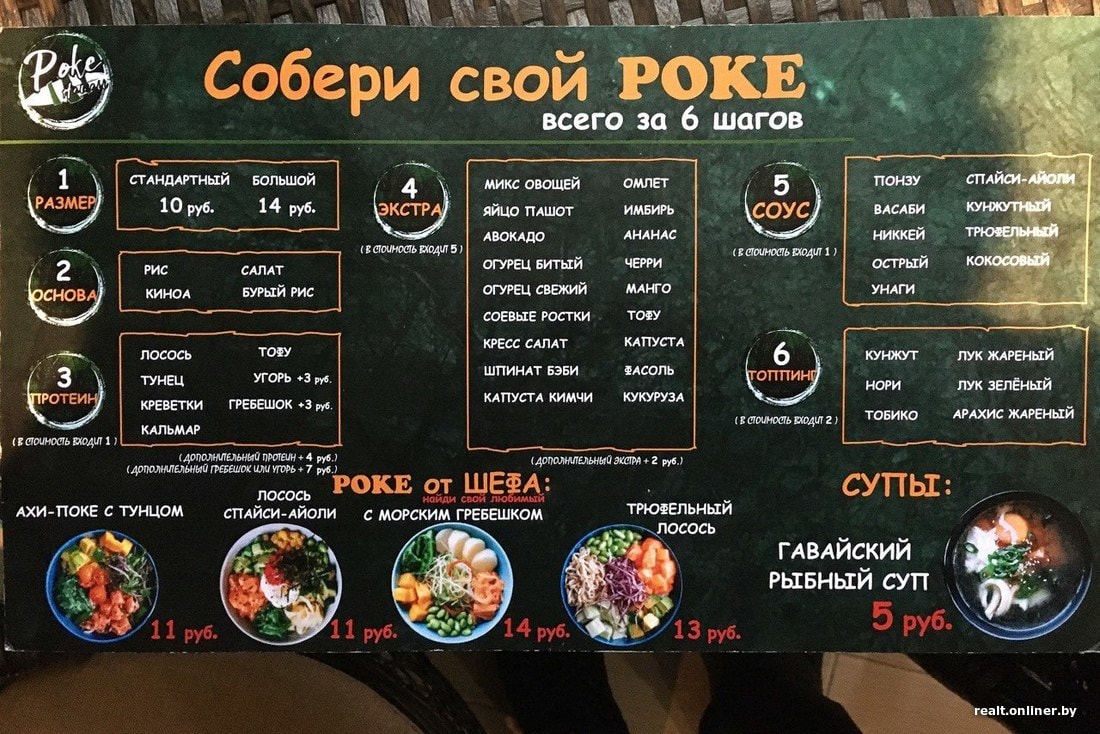 Блюдо под названием поке переживает в Минске свой звездный час. Это национальное гавайское кушанье, состоящее из риса, рыбы, овощей и соуса. Недавно на фуд-кортах появились точки, специализирующиеся на поке, есть оно и в меню ресторанов. Теперь молодые ребята открыли отдельное кафе с поке на бульваре Пикассо в «Маяке Минска».