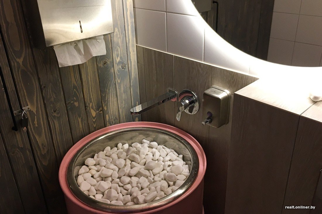 Дизайн нового интерьера разработала студия Das Haus. От хипстерской тематики ничего не осталось, даже легендарный велосипед исчез. Но это неудивительно, ведь и хипстеры переквалифицировались. Теперь здесь много розового, белого, зелени, картин на космическую тематику. Обновился и логотип. В туалете — целая арт-инсталляция. Хотите справить нужду? Возможно, придется потерпеть, так как в туалет стоят очереди из девочек с фотоаппаратами.