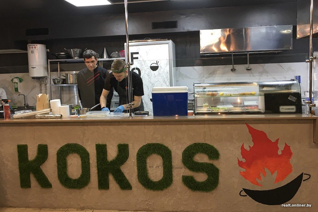 Kokos — небольшое местечко с открытой кухней и несколькими столиками в переходе ст. м. «Уручье». Выбор места, конечно, нетривиальный. Так сложилось, что в минских переходах работают только магазинчики и забегаловки, сети же там не появляются, считая это чем-то зазорным. А Сумуду взял и рискнул.
