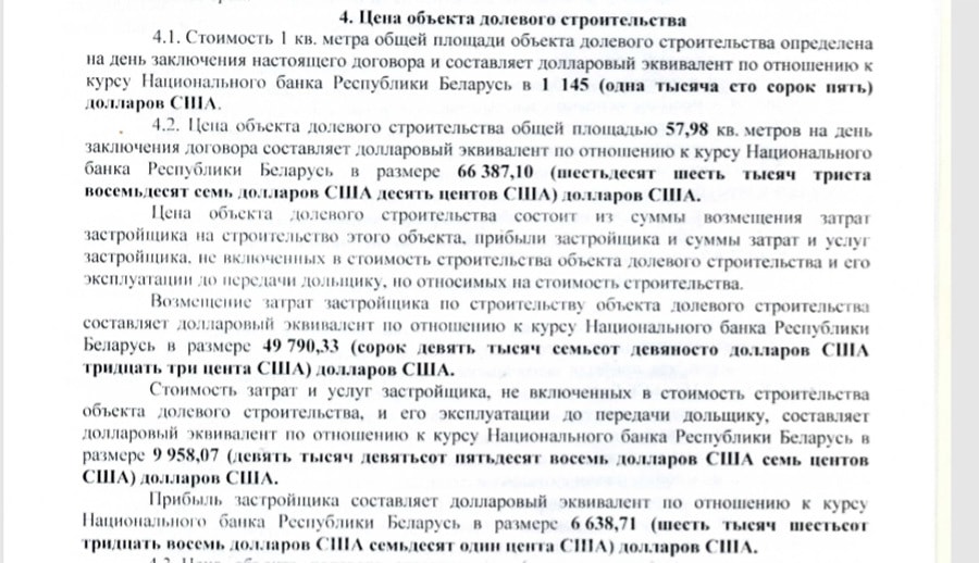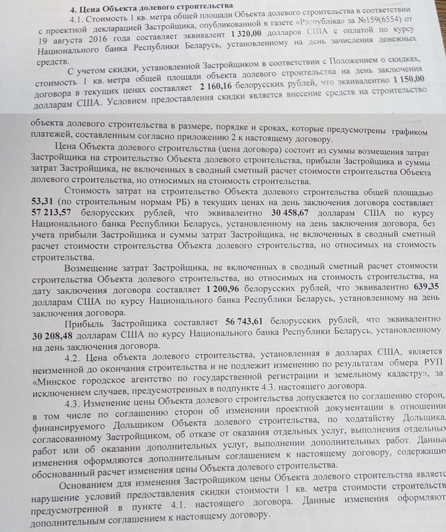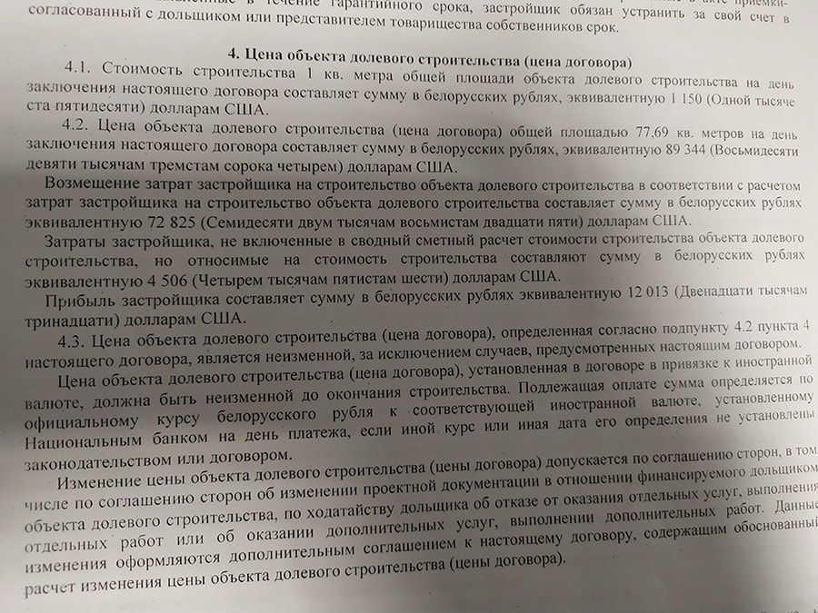 Совершенно предсказуемо самое большое количество образцов договоров пришло от тех, кто имел дело с компанией Dana Holdings (во всем многообразии ее строительных лиц): кто больше всех строит, тот постоянно и на виду. Не из Минска, к сожалению, прилетело всего одно письмо, зато какое — оказывается, «каркасники» можно продавать по $640 с выгодой для себя.