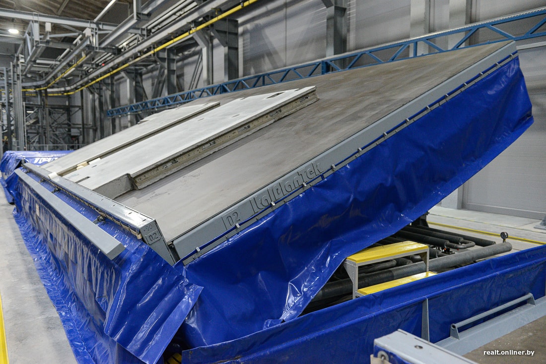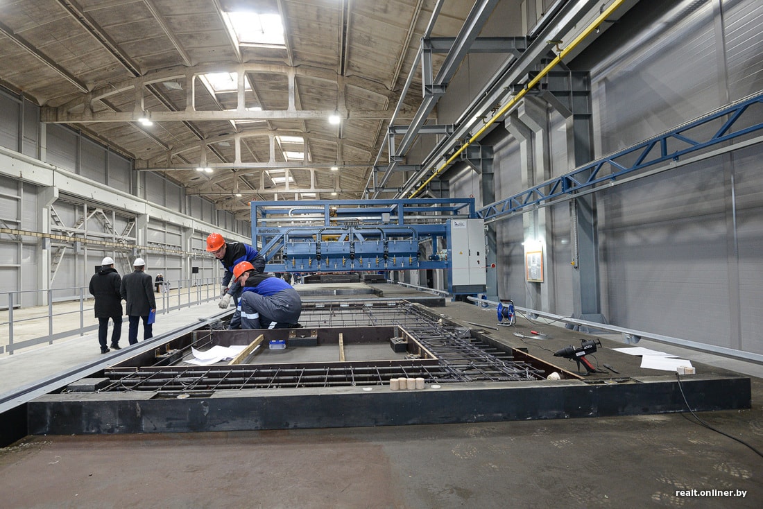 — Эта стендовая линия универсальна: на ней можно производить наружные стены (одно-, двух-и трехслойные), внутренние перегородки, плиты перекрытия и даже сваи. Максимальная толщина плиты — 500 мм, хотя остальные производители сейчас предлагают максимум 450 мм. Что дает увеличенная толщина? Возможность создавать здания класса «А» по энергетической эффективности, а также удовлетворить потребность заказчиков в подобных изделиях за рубежом, — объясняет заместитель главного инженера по промышленности Андрей Гермацкий.