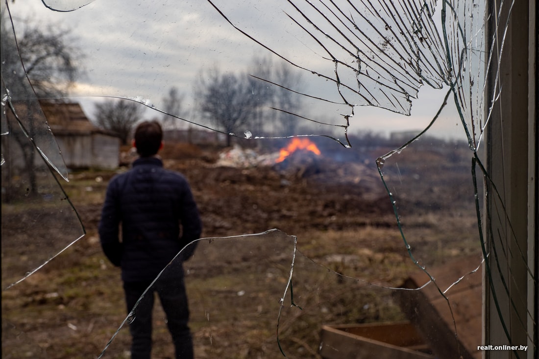 Возле груды обломков работает трактор — еще вчера здесь стоял чей-то дом. Рядом рабочие жгут огромные костры. Грузовики вывозят все, что не может сгореть. От старой застройки осталось десятка два домов, почти все уже отселены.