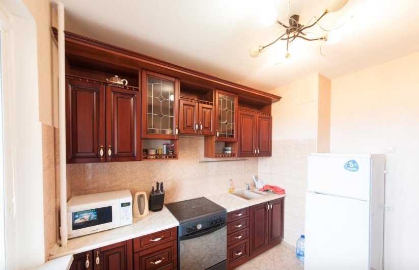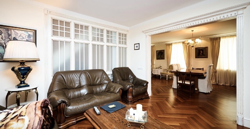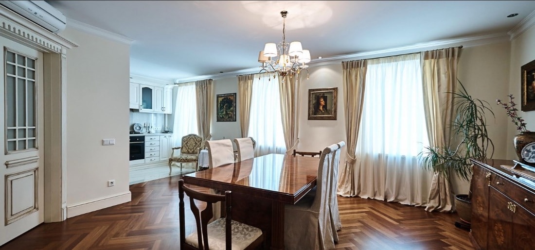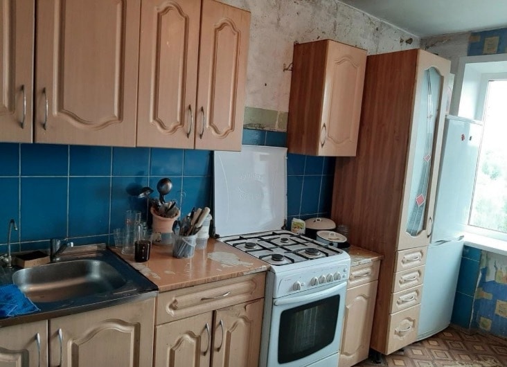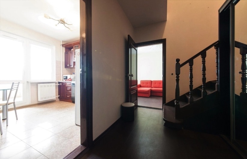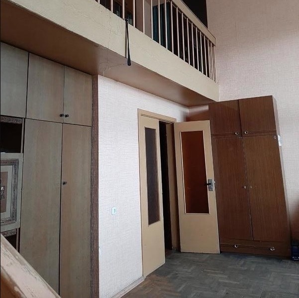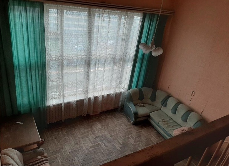 В двухуровневой квартире 5 комнат, 2 санузла, большая кухня и огромная гостиная размером с типовую однокомнатную квартиру. Она выставлена на продажу за $130 тыс., несмотря на то, что нуждается в ремонте.