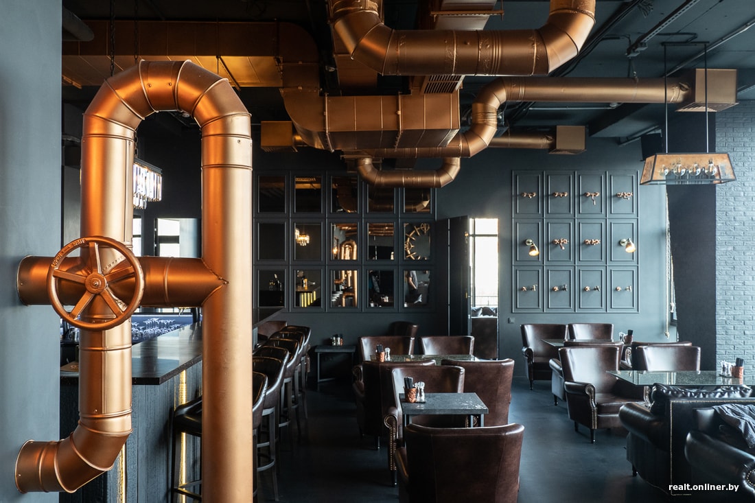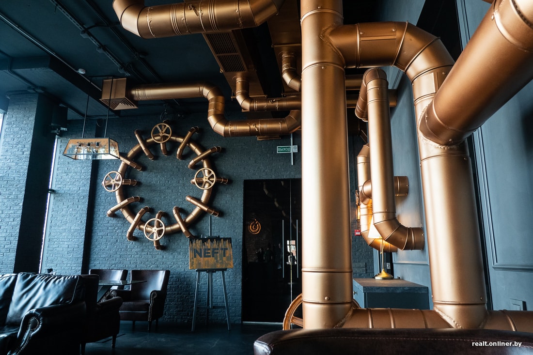 — У нас было название, которое мы несколько лет держали в голове. Оно нам так нравилось, что мы решили под него придумать стилистику, дизайн. Обратились к дизайнеру Елене Ураловой, у нас были какие-то идеи, мысли, которыми мы поделились с ней. Она все это переварила и предложила нам концепцию: трубы, много-много меди, темные тона.