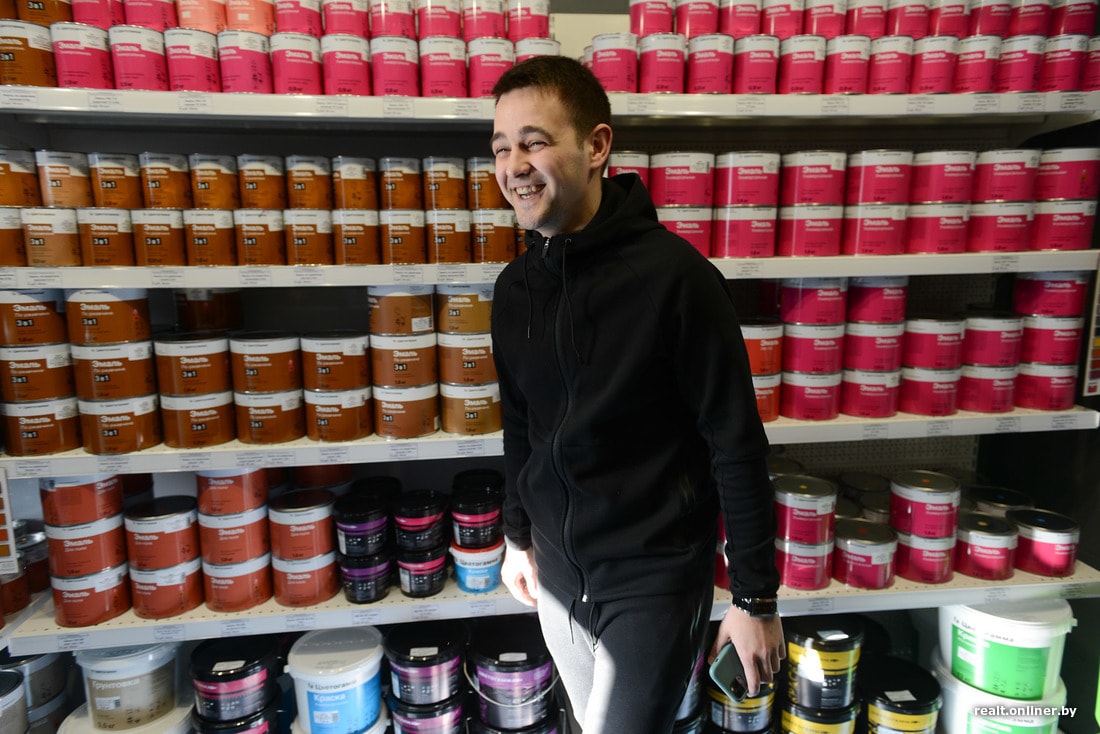 В помещении напротив сын бизнесмена Женя продает электрику со своим напарником, а с прошлой недели занимается еще и краской. Парни говорят, что местные новому магазину оказались рады — раньше ничего подобного в Ошмянах не было.