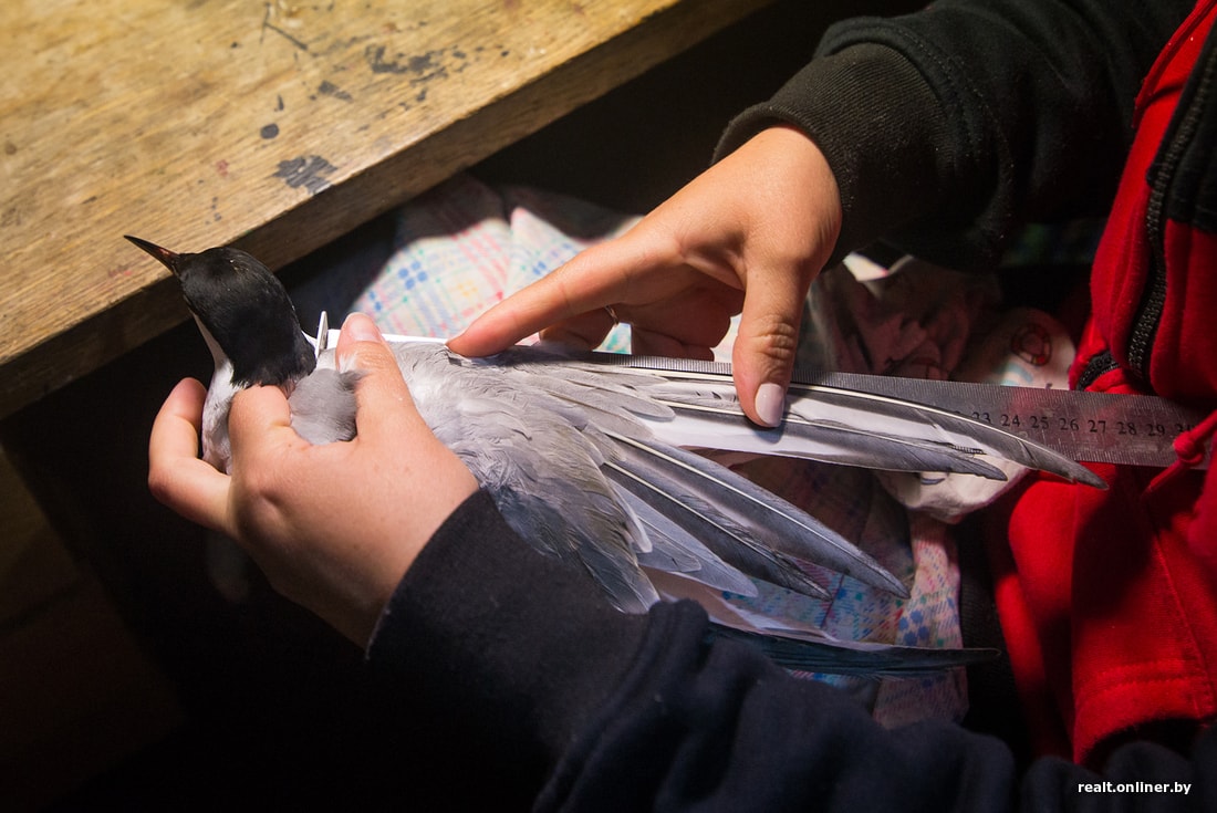 С наступлением темноты птиц, которые ищут место для безопасного ночлега, отлавливают уже с помощью сетей. Это более эффективный способ, но для его использования нужна подходящая погода: во время дождя или сильного ветра сети приходится закрывать. Кроме куликов, в них могут попасться самые разные виды, включая белокрылых крачек, которых тоже кольцуют. После этого наступает самый волнительный и приятный момент, когда птицу можно отпустить на свободу. Кажется, что именно ради него можно приезжать на Туровскую станцию кольцевания.