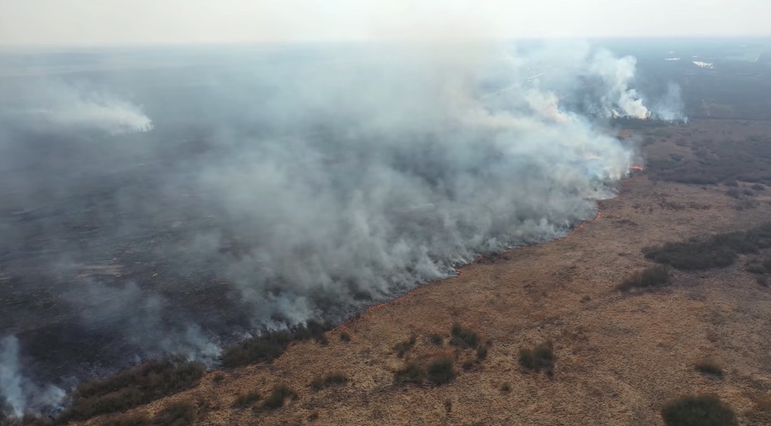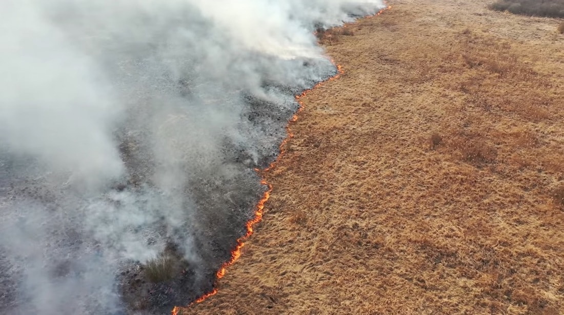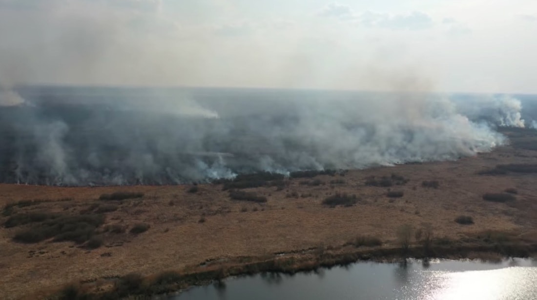 Появилось видео масштабного пожара в экосистеме реки Пины
