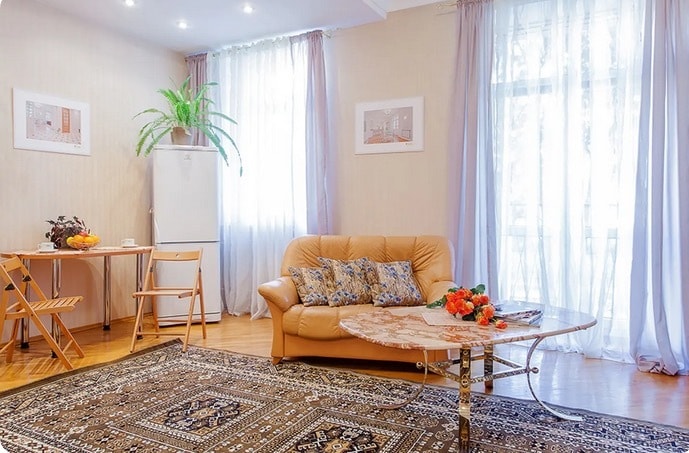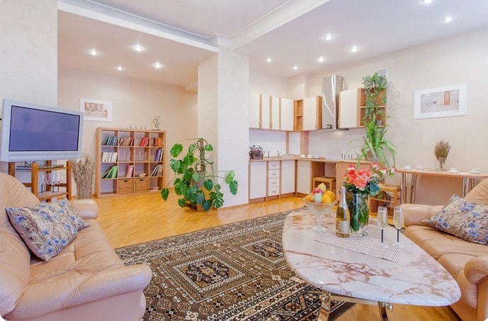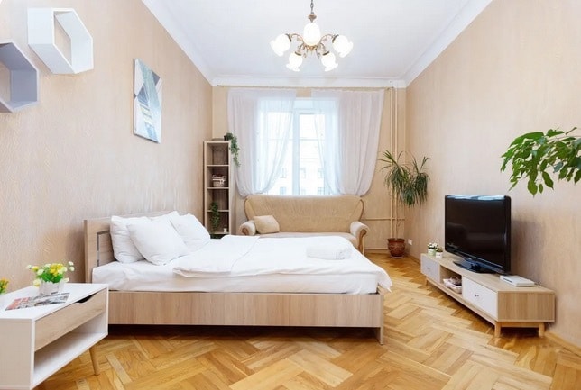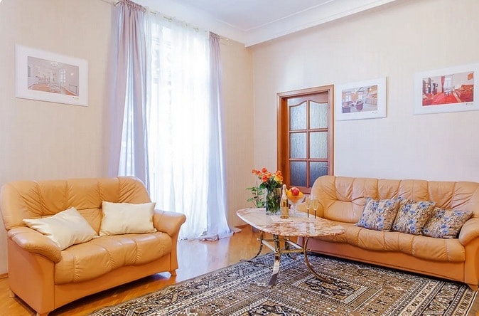 Всего за $36 (или 90 рублей) в сутки можно оказаться в «сталинке» на улице Ленина — прямо возле ГУМа и в пешей доступности до всех значимых мест центра города. В апартаментах целых три комнаты, в которых с комфортом могут разместиться шесть гостей.