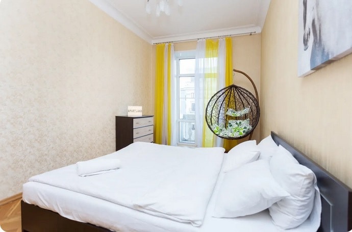 Довольно милые апартаменты на Независимости, 19, отдадут всего за $27 (68 рублей) в сутки. И в эту сумму, заметьте, включены три раздельные комнаты и довольно просторная кухня — заезжай хоть компанией из десяти человек. «Квартира примерно такая же, как и на фотографиях. Так как основную часть времени я и люди, которые были со мной, не находились в апартаментах, то буду расценивать квартиру как „перевалочный пункт“ и место, чтобы переночевать. Для этих целей место подходит идеально: кровати мягкие, белье чистое, санузел в порядке. Все люди остались довольны, и я в том числе», — написал отзыв Олег, который жил в квартире в феврале 2020-го.