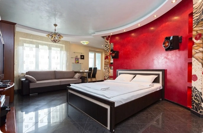 В экзотичных апартаментах на Заславской можно прожить один прекрасный день всего за $22 в сутки (порядка 55 рублей). Когда еще такое будет! «Необычные апартаменты для проживания и отдыха двух-четырех человек в самом центре Минска. Прекрасно подойдут не только для тех, кто предпочитает отдых в тишине и прогулки на природе, но и для тех, кто любит проводить вечера более активно и весело», — описывает свой объект автор объявления.