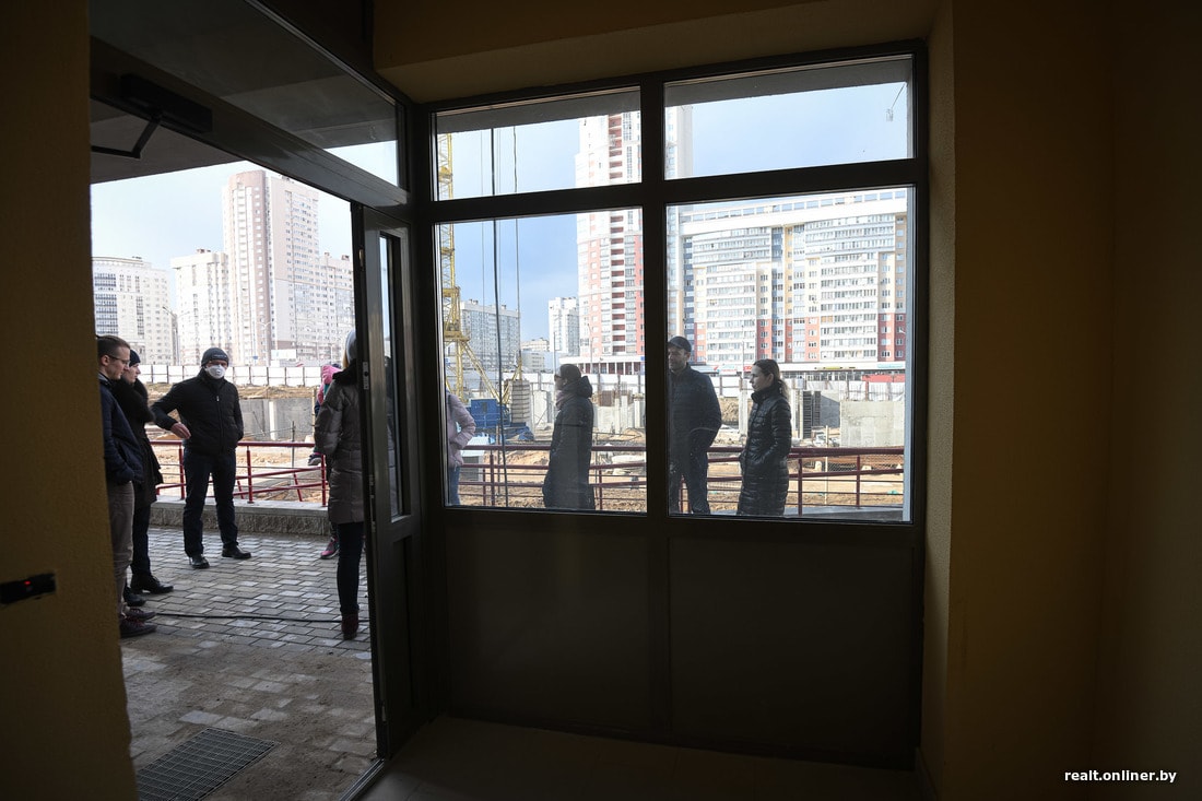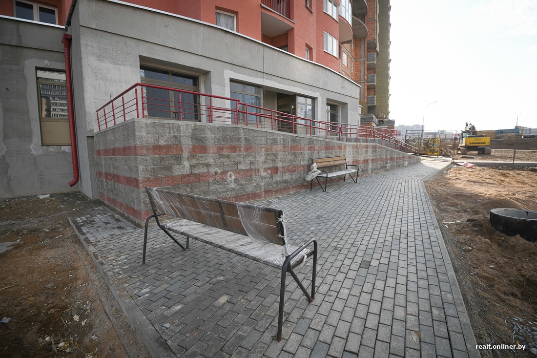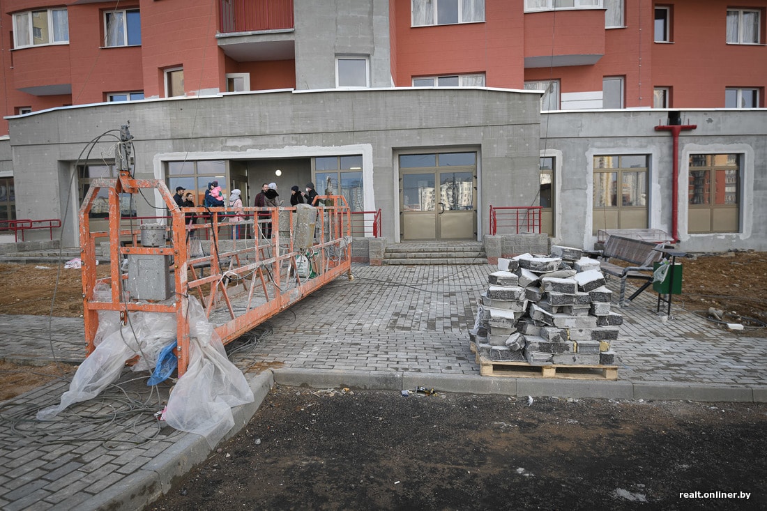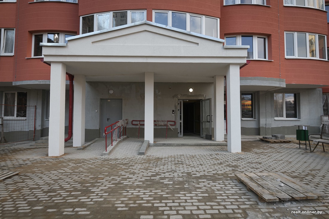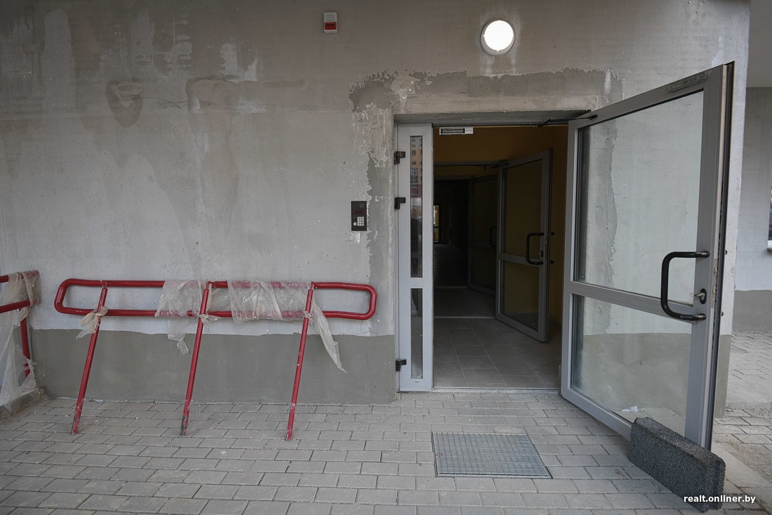 Претензии минчан к подъезду совершенно справедливы. Дело в том, что еще в 2017 году, когда срок сдачи дома переносился на более поздний, застройщик решил «умаслить» держателей облигаций и декларировал своеобразную компенсацию: «В настоящее время проработаны вопросы по выполнению отделки мест общего пользования согласно индивидуальным дизайн-проектам и обустройству детской площадки с применением современных игровых комплексов».