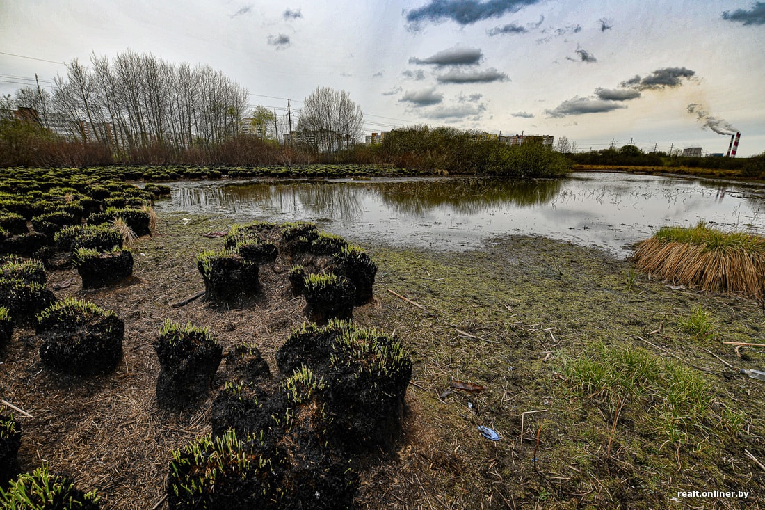 В черте Минска среди вспаханного поля между микрорайонами Сухарево и Малиновка есть небольшой пруд, возле которого, по словам местных жителей, часто отдыхают люди. Пруд находится возле знаменитого яблоневого сада. Вообще, в Малиновке не так уж много природных объектов и мест рекреации, так что жители микрорайона довольствуются тем, что есть. В середине апреля на лужайке у пруда произошел пожар. Жители района считают, что он начался по вине шашлычников, на что указывают осколки стеклянной тары из-под спиртных напитков. Но по мнению МЧС, причины могут быть разными: начиная от небрежно брошенного окурка или шалости с огнем и заканчивая палом травы. Так или иначе, в грустных декорациях сожженного болотца можно снимать страшный фильм: оно приобрело поистине колдовской вид.