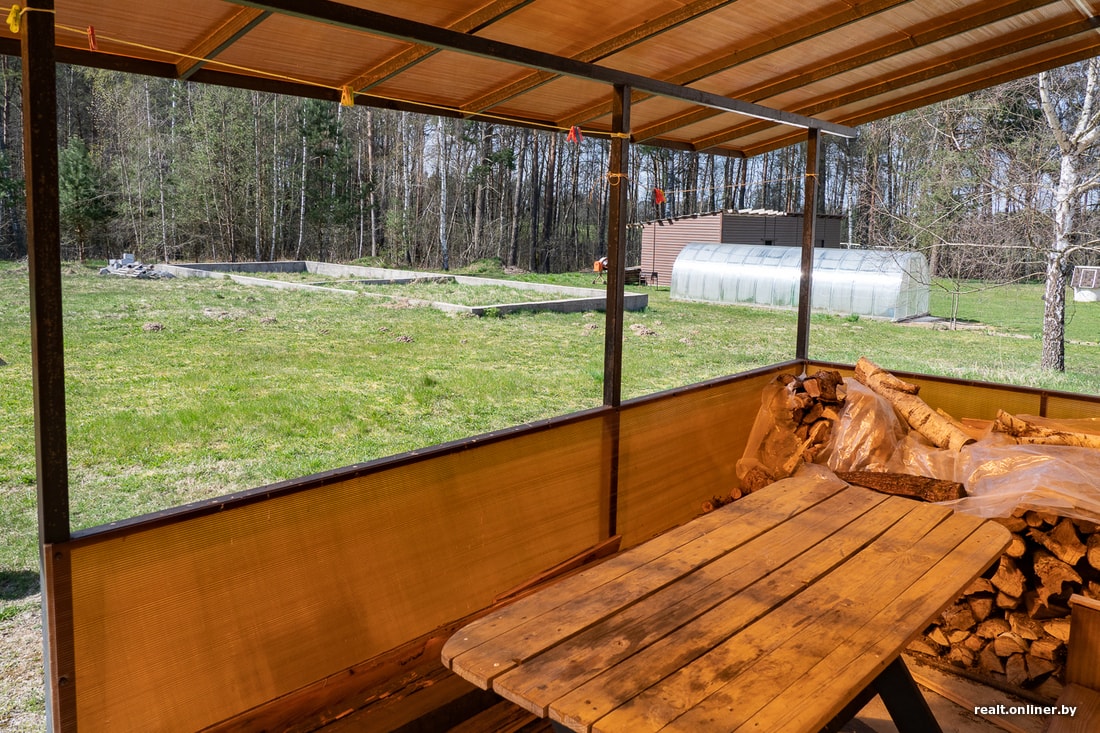 Переносимся в садовое товарищество «Струсто» — до озера Бережье около 100 метров через лес. Лес тут вообще главный — подпирает участок площадью 11 соток с двух сторон. А еще за наделом есть небольшая заводь: расчисти, и будет личный пруд.