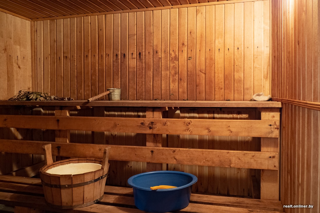 Так получилось, что в момент нашего визита основной дом как раз был занят «изолирующимися», поэтому посмотреть его изнутри не получилось. Ну, хоть как выглядит баня узнали.